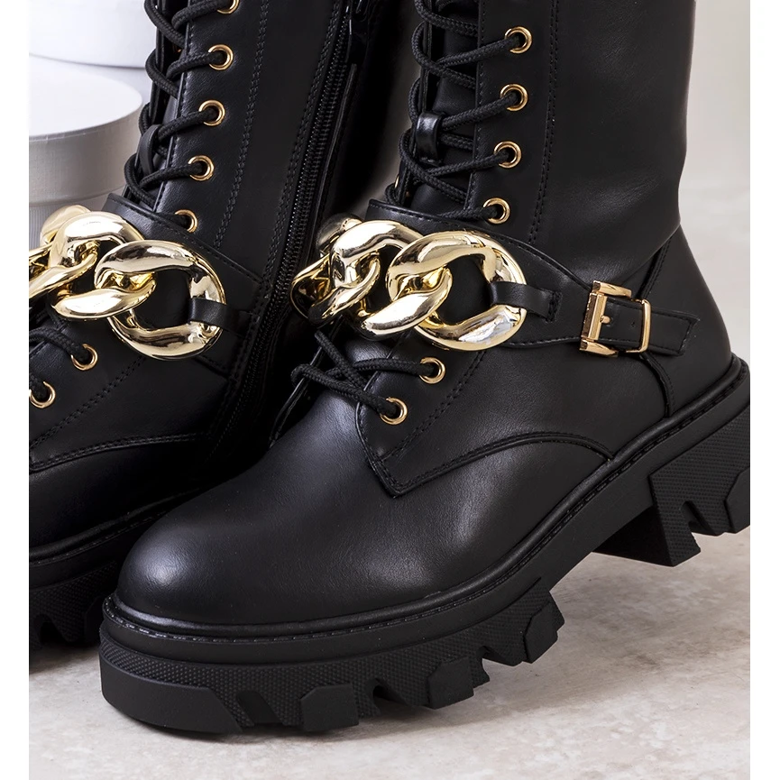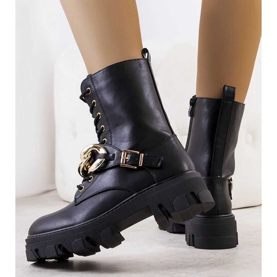 Les trappeurs Laboy complètent à la mode les tenues d’automne, vous pouvez les combiner avec un manteau ou une veste en cuir. La tige est en cuir écologique de haute qualité. Vous pouvez retirer l’épaisse chaîne dorée à tout moment lorsque vous voulez changer quelque chose dans votre style 😉 L’intérieur est fini avec de la fourrure chaude. Numérotation standard, veuillez suivre votre taille.