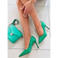 Escarpins femme sur talon de 10 cm. Le motif Ă pois leur donne du caractère – nous vous garantissons que vous ne passerez pas Ă cĂ´tĂ© d’eux indiffĂ©remment 🙂 La mode avec le nez en pointe dĂ©licate rend la jambe très soignĂ©e. Parfaits pour les occasions spĂ©ciales – mariages, bals, bals… Ils sont faits de tissu imitant le satin.