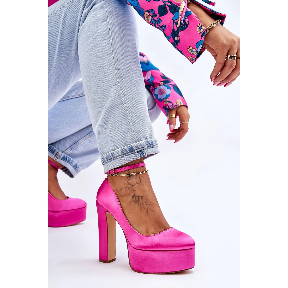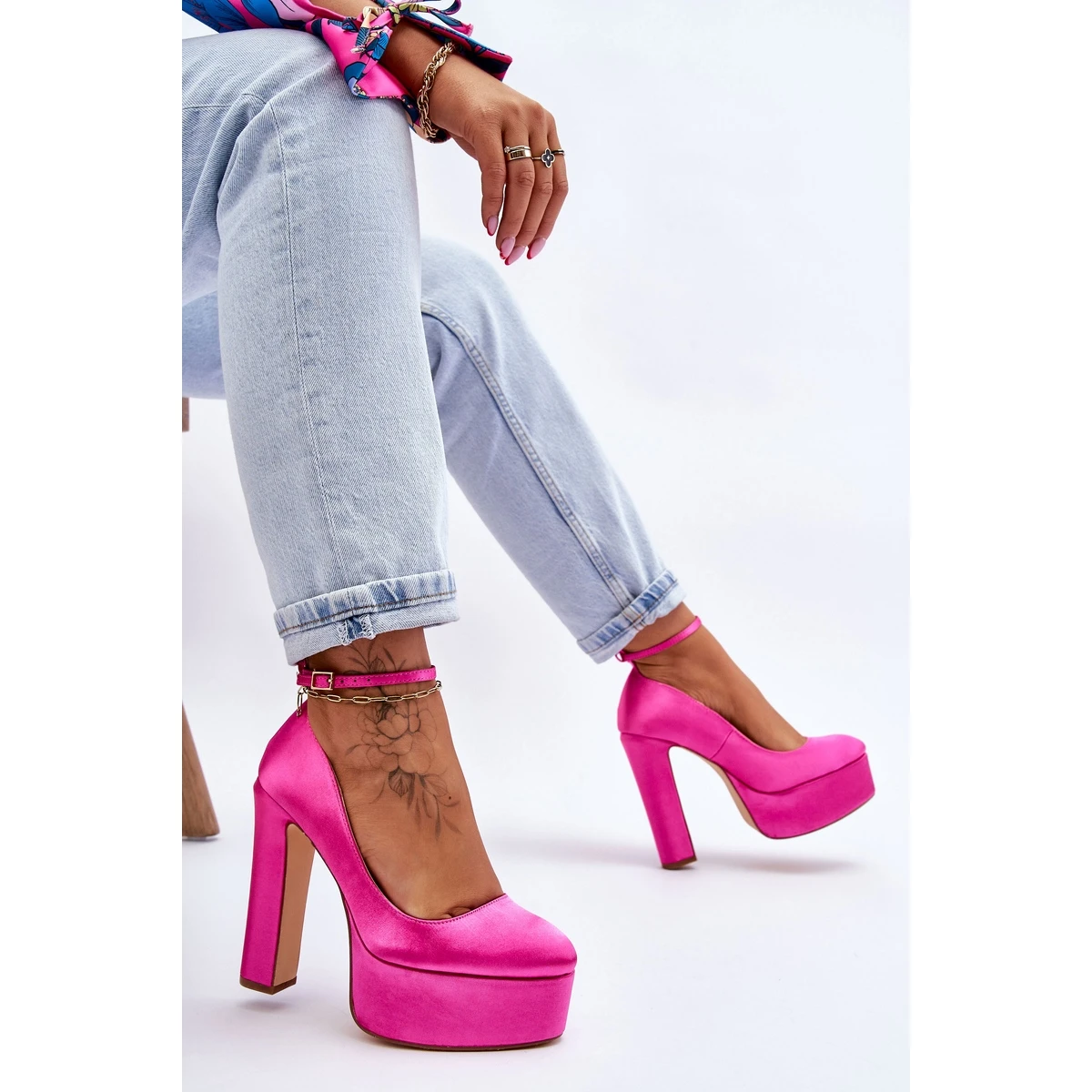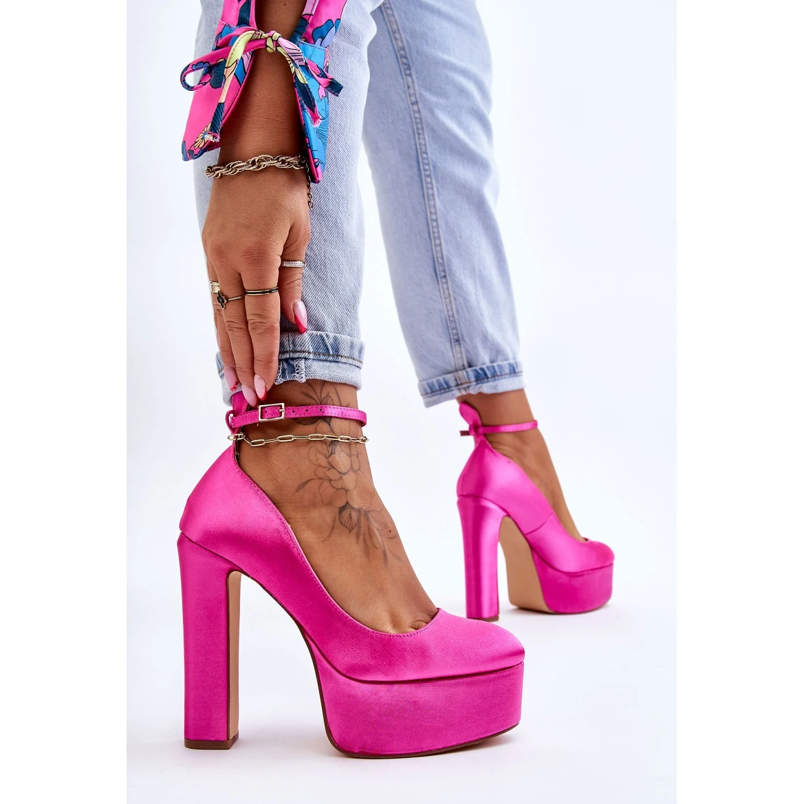 Des escarpins incroyables sur un poteau et une plate-forme massive plairont sûrement aux femmes qui aiment les talons hauts ! La tige est en matière textile. La semelle intérieure souple en cuir écologique permettra une utilisation confortable. Fermé autour de la cheville avec une boucle avec une sangle réglable. Ils seront parfaits en combinaison avec des robes et des pantalons. Lorsque vous choisissez une taille, veuillez utiliser le tableau des tailles