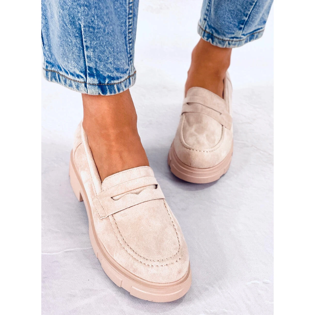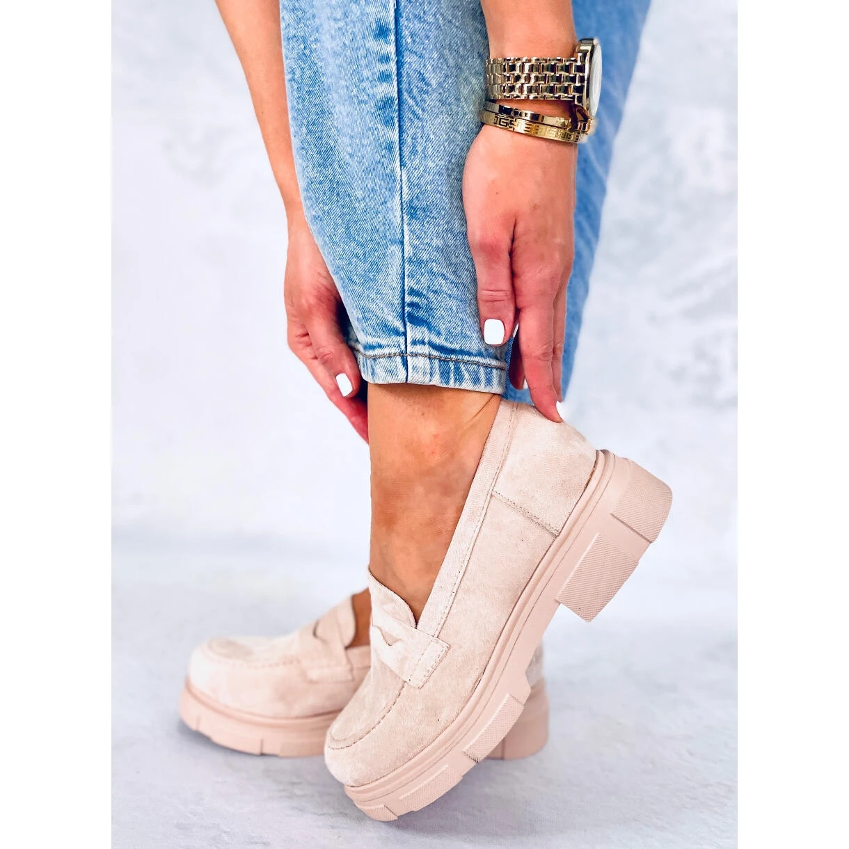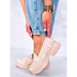 Mocassins femme en daim. L’association d’une forme classique et de la plateforme la plus en vogue donne le meilleur effet ! Nous adorons ces combinaisons 🙂 Ce sont des chaussures parfaites pour tous les jours – vérifiez-les vous-même ! Matériau extérieur – daim écologique.