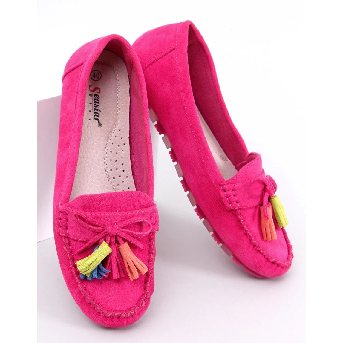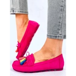 Mocassins femme en daim. Si vous aimez les coupes classiques associĂ©es Ă des accessoires spectaculaires, choisissez ce modèle unique aux pompons colorĂ©s. Non seulement ils ont fière allure, mais ils sont aussi super confortables ! Ils sont fabriquĂ©s en daim Ă©cologique et Ă l’intĂ©rieur, ils ont une semelle intĂ©rieure confortable en cuir naturel.