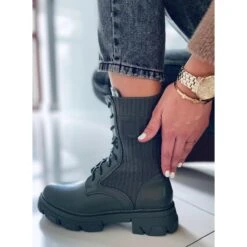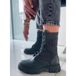 Bottines femme sur semelle haute. Voici des chaussures pour les fashionistas suivant les dernières tendances ! Une tige chaussette souple et une semelle Ă©paisse lui confèrent un caractère mode. Nous aimons de telles combinaisons … Non seulement elles ont fière allure, mais elles sont aussi incroyablement confortables 🙂 MatĂ©riau extĂ©rieur – cuir artificiel + tissu.