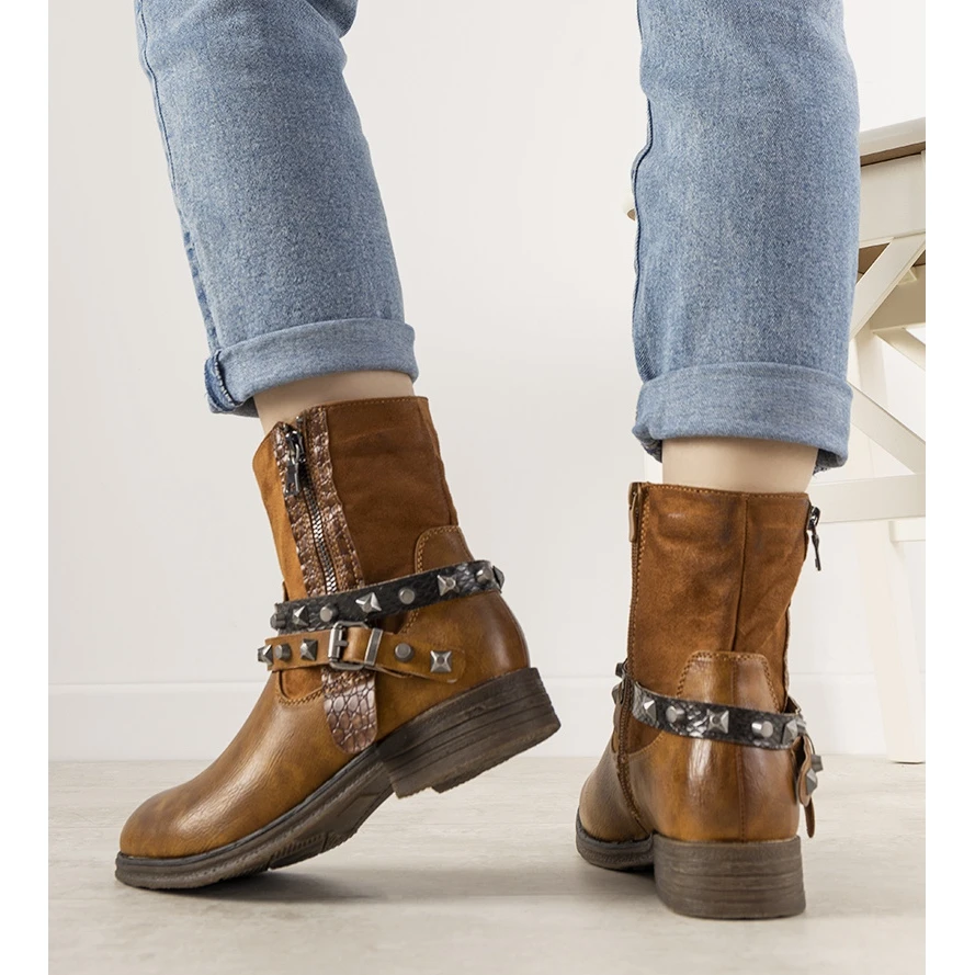 Les boots Elffie impressionnent par leur style original ! Les chaussures sont faites de cuir écologique avec l’ajout d’éco-suède. Ils sont décorés de rayures avec des clous. Les chaussures ont une fermeture éclair qui facilitera l’enfilage. Numérotation normale. veuillez suivre votre taille.