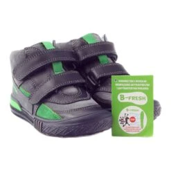 La dominance du gris et du noir universel, associée au vert ravivant, est le mélange parfait des couleurs les plus en vogue cet automne. La commodité et le confort au quotidien sont assurés par un contrefort de talon rigide, une semelle intérieure profilée et une semelle intérieure supplémentaire en cuir naturel. Ainsi, le pied du bébé peut non seulement être léger, mais aussi respirer.