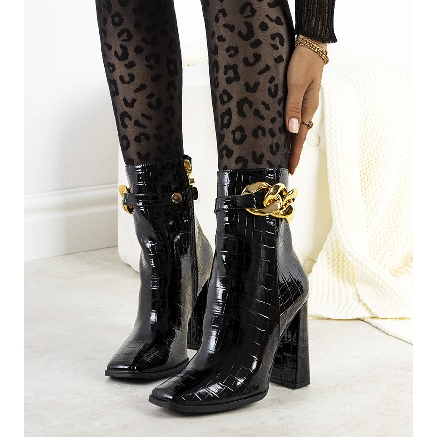 Le modèle phénoménal Aresla ravira sûrement beaucoup d’entre nous. Le haut talon de type bloc complète parfaitement la coupe élégante. La tige est en cuir écologique verni orné d’une structure en crocodile. Les bottes seront parfaites en compagnie d’un manteau ou de bottes de motard. L’intérieur est fini avec une matière imitant la fourrure. Numérotation standard, veuillez suivre votre taille.