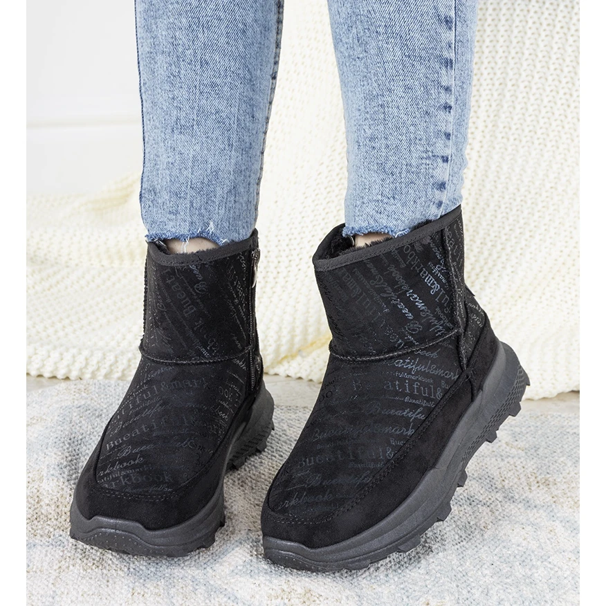 Les bottes Crescent sont fabriquées en cuir écologique suédé. La tige est élégamment décorée de lettres dorées. La fourrure nous procurera un confort exceptionnel les jours d’hiver. Une semelle épaisse, à la mode cette saison, complète avec style le modèle Crescent. Les bottes de neige seront le choix parfait en hiver. Numérotation sous-dimensionnée, nous vous suggérons de choisir une taille plus grande.