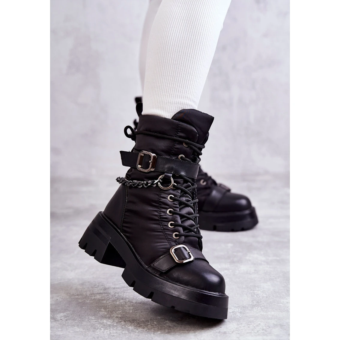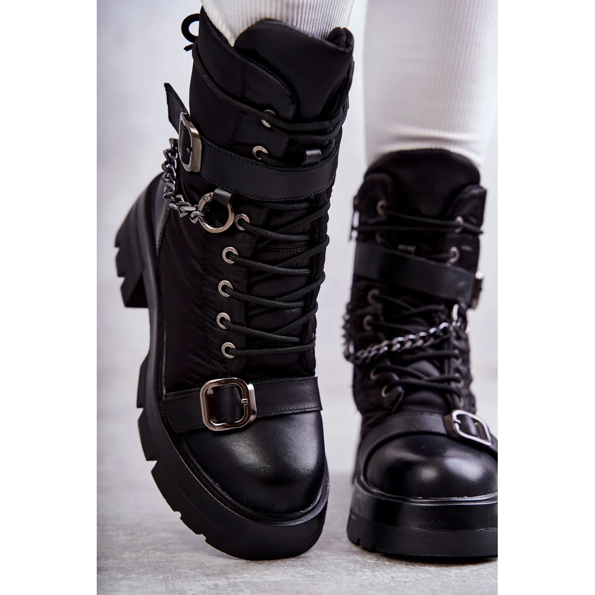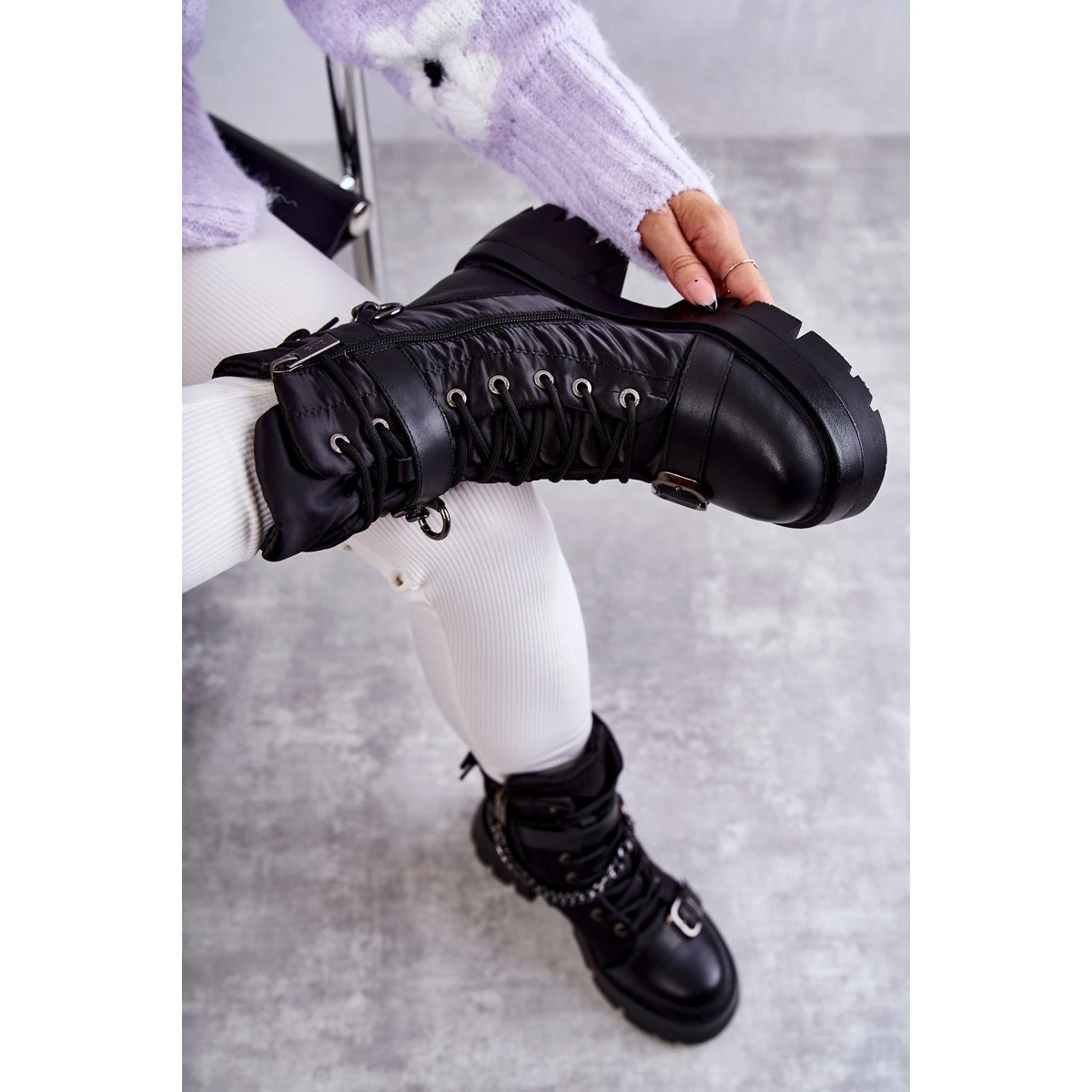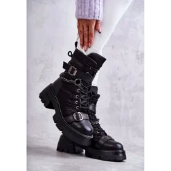 Bottes Ă la mode – les bottes de neige Ă©taient montĂ©es sur une plate-forme et un talon plat. OrnĂ© d’une ceinture Ă boucle et d’une chaĂ®ne amovible. Fait d’une combinaison de textile et de cuir naturel. Laçage classique, avec une fermeture Ă©clair supplĂ©mentaire sur le cĂ´tĂ© de la tige. RĂ©chauffĂ© Ă l’intĂ©rieur avec de la fourrure. Les journĂ©es froides ne sont plus si mauvaises dans ces chaussures ! Lorsque vous choisissez une taille, veuillez utiliser le tableau des tailles.