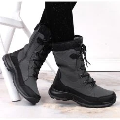 Les bottes de neige en tissu AQUASoftshell, grâce auxquelles les chaussures sont légères, douces, flexibles, respirantes, ont une membrane DKTECH qui offre une résistance accrue au trempage et régule l’humidité, ce qui rend difficile la pénétration des particules d’eau et de vent de l’extérieur