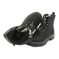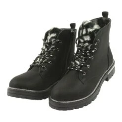 Les chaussures sont fabriquées dans un type de matériau spécial, le cuir écologique, qui garantit des valeurs d’utilité élevées et une sécurité d’utilisation. L’intérieur des bottes est isolé avec de la fourrure de chaussures, disponible en noir. Ils ont un design intéressant, une languette douce en fourrure qui plaira sûrement aux clients.