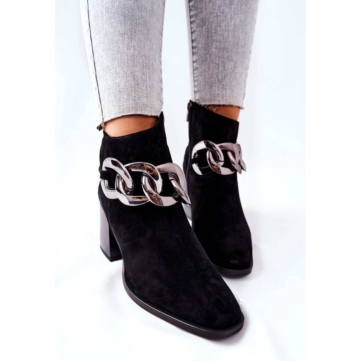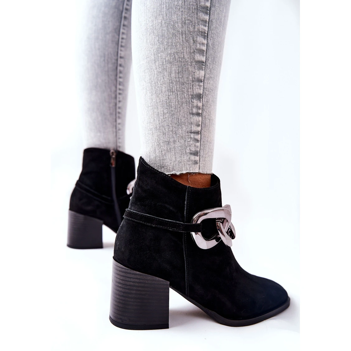 De belles bottes avec une chaĂ®ne dĂ©corative ont fière allure en combinaison avec des robes ou des jupes. Ils sont faits de peau de chamois naturelle. De plus, Ă l’intĂ©rieur, ils sont isolĂ©s avec une couverture pour chaussures. Ils ont une fermeture Ă©clair et un talon large. Ils ne peuvent pas manquer dans votre garde-robe! Lorsque vous choisissez une taille, veuillez utiliser le tableau des tailles.