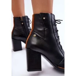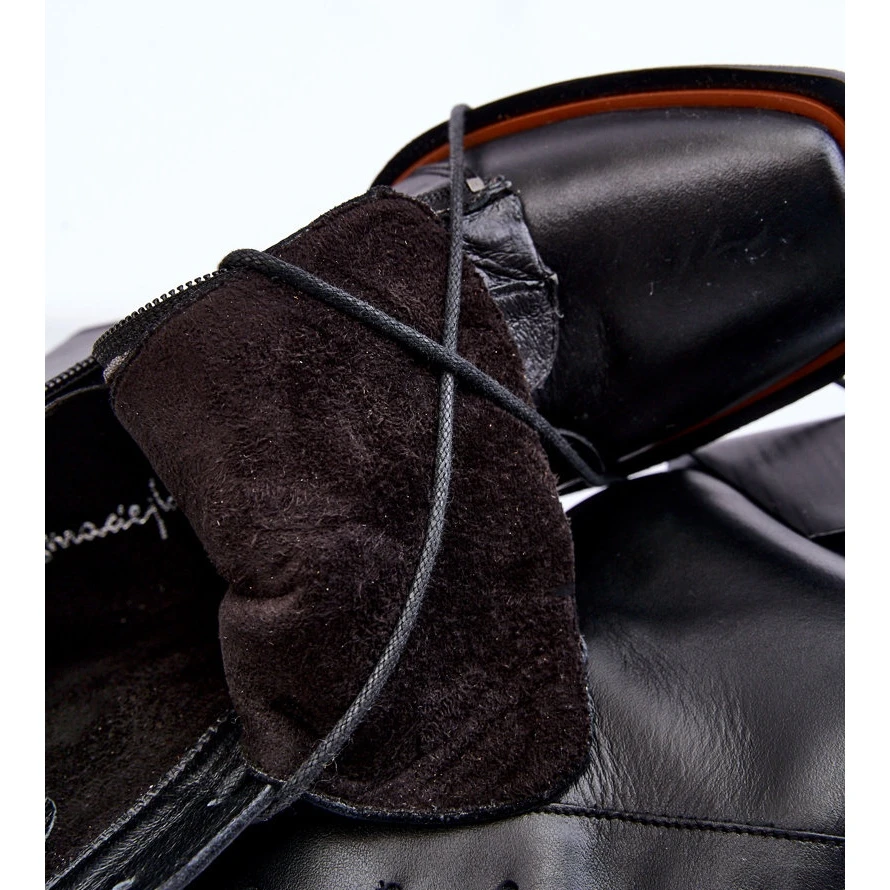 Les bottes pour femmes Maciejka sont fabriquées en cuir naturel de haute qualité. Le modèle est classiquement lacé et fermé par une fermeture éclair. Les bottes ont un bout carré à la mode. Le talon est raidi. La semelle intérieure douce assurera un confort tout au long de la journée. Les bottes étaient montées sur un talon en forme de bloc supérieur. Lorsque vous choisissez une taille, veuillez utiliser le tableau des tailles.