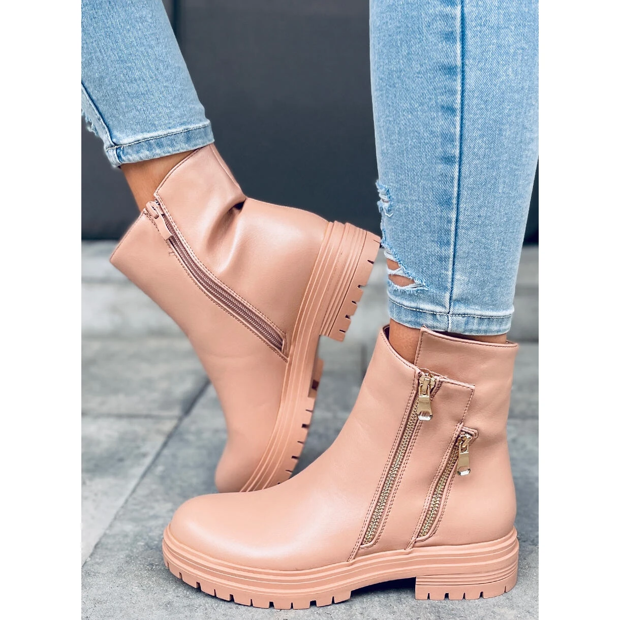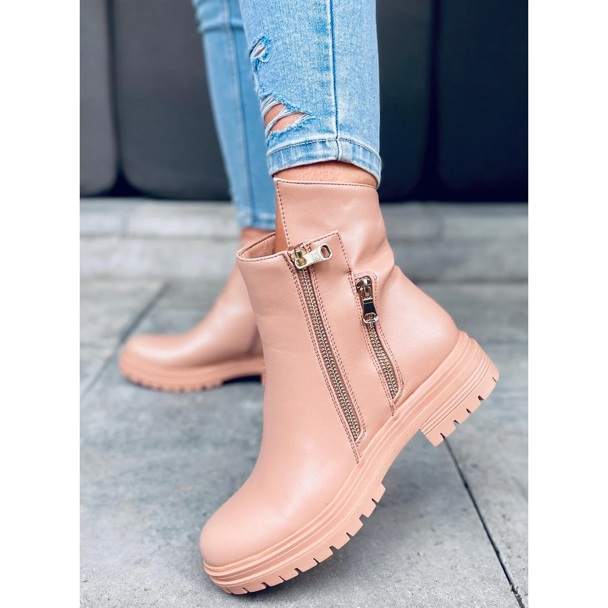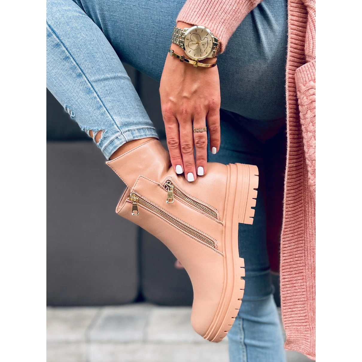 Bottes pour femmes sur le protecteur. Le modèle se distingue par un design intemporel avec une finition mate originale et des fermetures éclair dorées élégantes. Elles attireront certainement les regards… Les bottines ont une fermeture zippée confortable qui facilite l’enfilage. Ils sont en cuir écologique et l’intérieur est doublé de fourrure délicate.