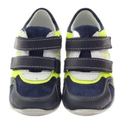 Les bottes Velcro Ren But 1445 sont des chaussures bleu marine avec des accessoires aigue-marine et blancs, en cuir naturel souple. Un talon rigide garantit la stabilisation du pied, et la fermeture velcro est très confortable. À l’intérieur de la chaussure, il y a du cuir naturel avec un insert en cuir naturel antibactérien. La semelle thermo-caoutchouc assure un confort de marche. Les chaussures s’ajustent au pied, elles plairont aux garçons actifs. De plus, les semelles absorbent les odeurs désagréables et sont anti-allergiques, ce qui est un avantage supplémentaire.