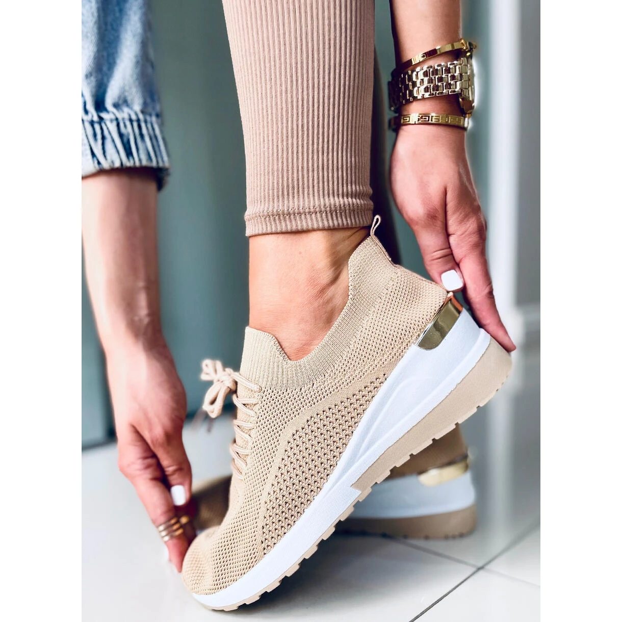 Chaussures de sport pour femme à talon compensé d’une hauteur de 6 cm. Ils sont fabriqués en tissu souple et respirant, grâce auquel ils s’adaptent parfaitement au pied. Ces chaussures sont très populaires parmi les amateurs de confort … Elles ne peuvent pas manquer dans votre garde-robe 🙂 Matériau extérieur + intérieur – tissu.