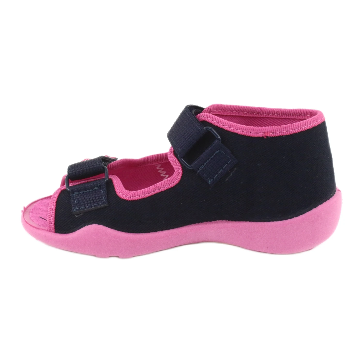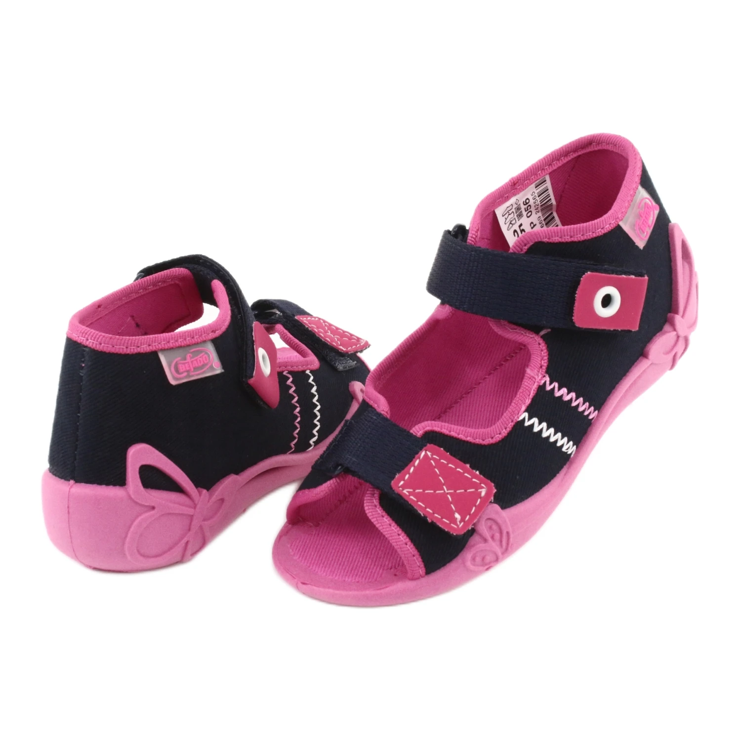 Les chaussons Befado sont très légers et ne limitent aucun mouvement, et en plus – ils ont un contrefort de talon rigide, qui normalise et raidit le pied, le protégeant ainsi contre les blessures. La semelle des sandales pour filles est en thermo-caoutchouc et est respirante, profilée anatomiquement au pied de l’enfant et possède également des propriétés antidérapantes.
