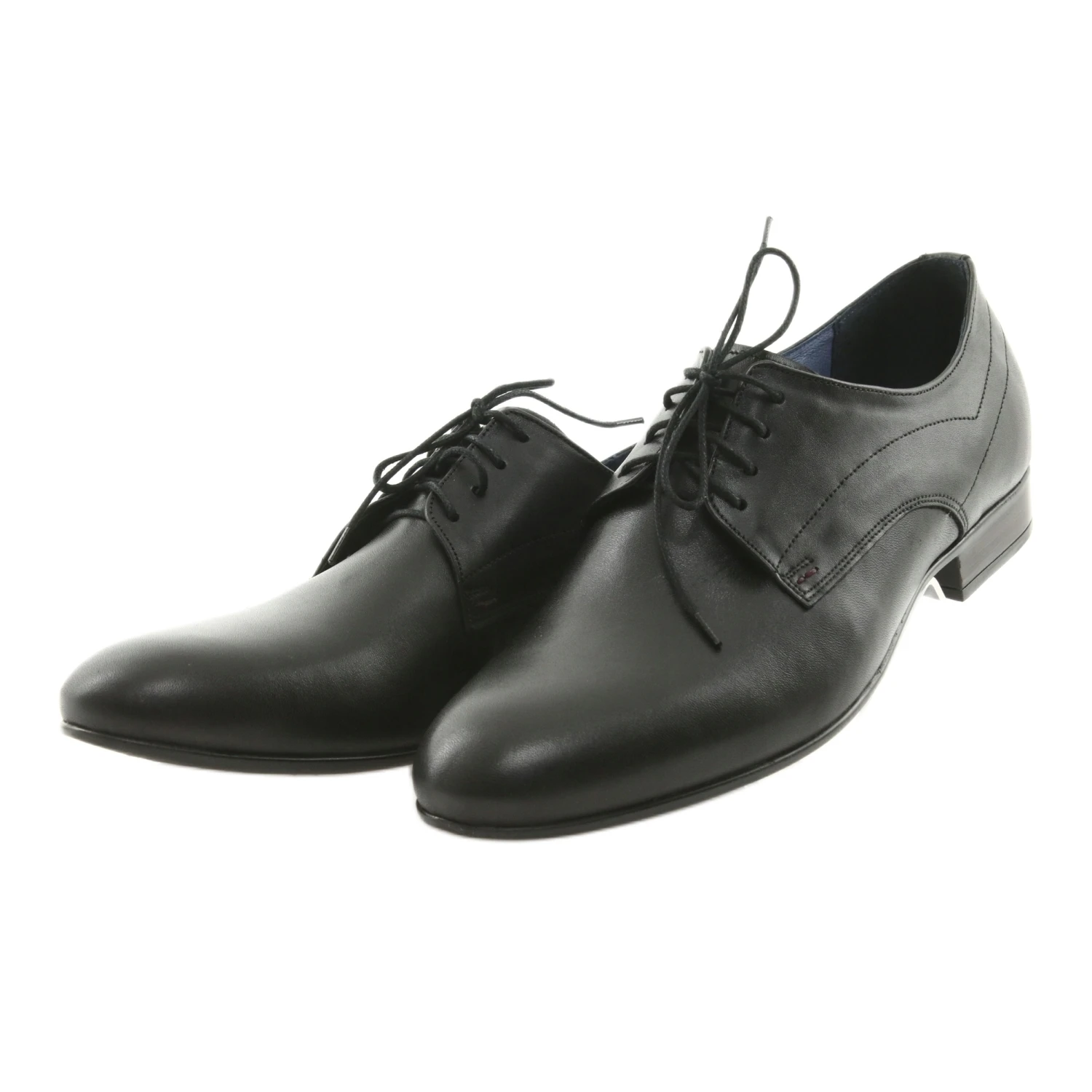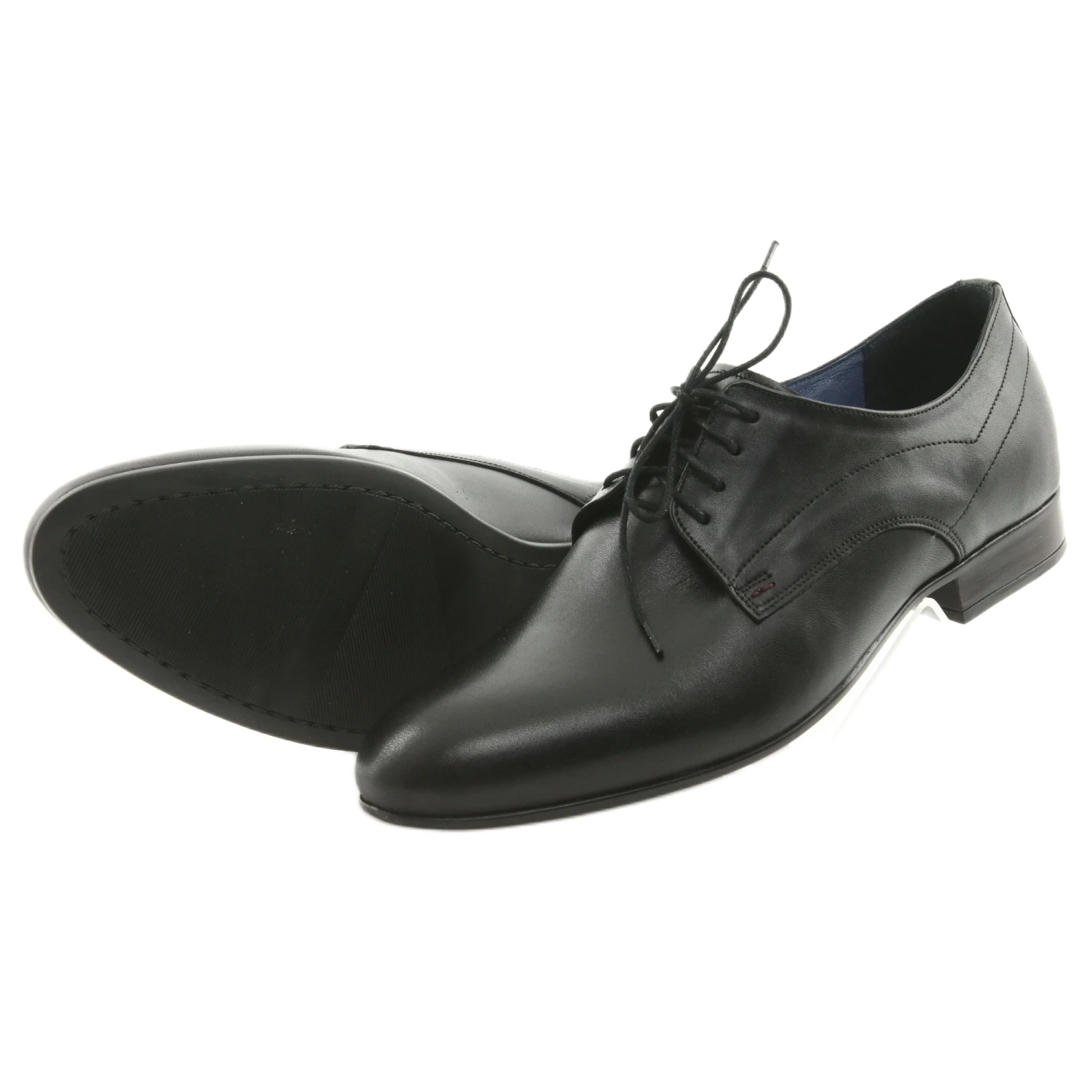 Les chaussures Nikopol 1525 sont entièrement fabriquées en cuir naturel avec une nuance de noir intense contrastant avec un intérieur beige-marron. Les chaussures sont caractérisées par des ornements délicats et des surpiqures sur la tige ainsi que par une coupe à lacets traditionnelle.