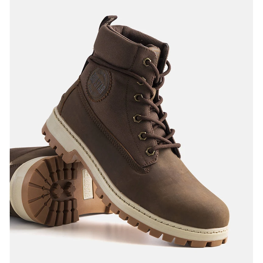 Les bottes de randonnée pour hommes seront parfaites en automne et en hiver. Le modèle sera un complément élégant aux stylisations de tous les jours. La tige est en cuir écologique de haute qualité. La semelle intérieure en mousse à mémoire de forme du pied nous offrira un confort incroyable. La marque Big Star garantit une haute qualité de fabrication et de matériaux. Numérotation personnalisée, nous vous suggérons de vous référer au tableau des tailles lors du choix.