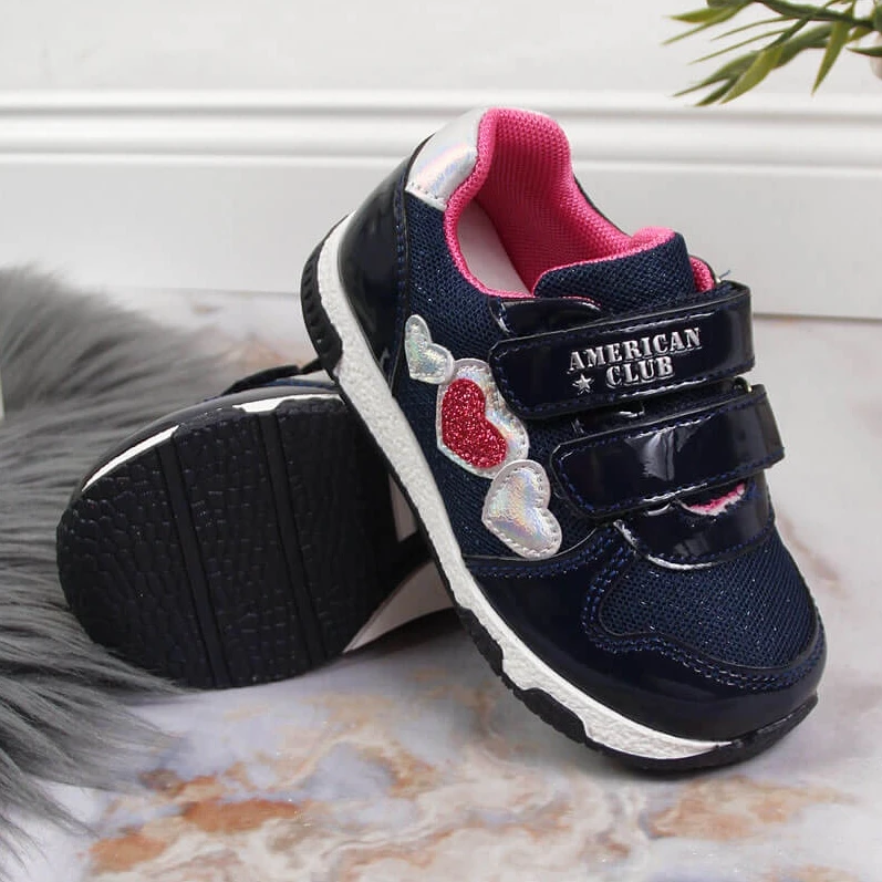 Chaussures confortables pour enfants American Club. Le velcro facilite le chaussage et le déchaussage tout en assurant un bon maintien. Les chaussures ont une semelle antidérapante, ce qui garantit un confort sur n’importe quelle surface.