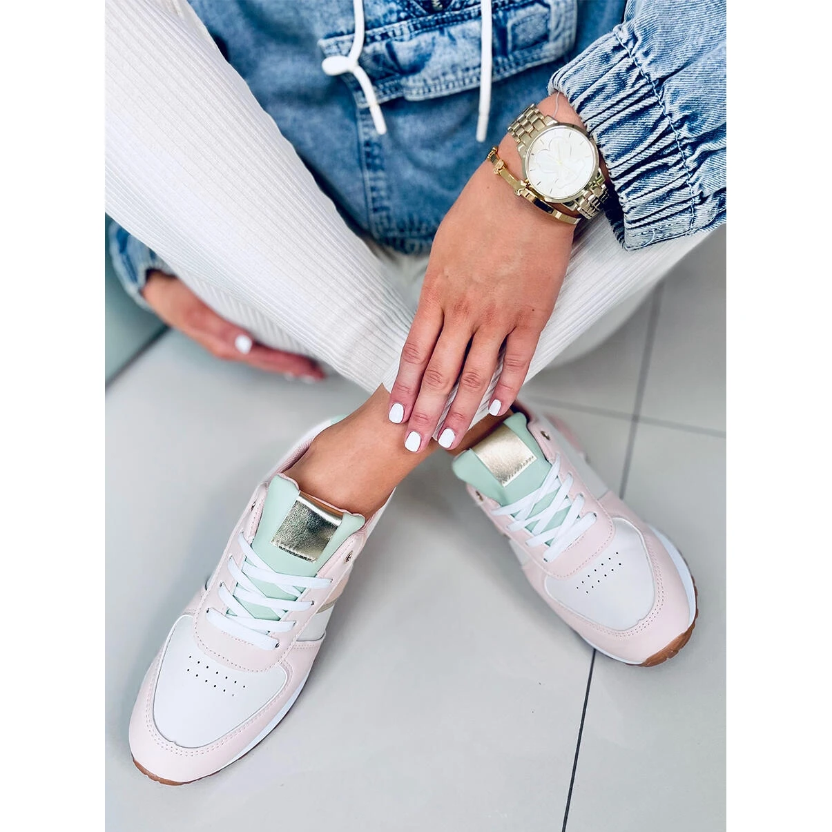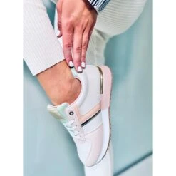 Chaussures de sport à lacets multicolores pour femmes Le modèle se distingue principalement par une combinaison de couleurs idéale et les accessoires les plus en vogue. Les chaussures allient aisance sportive et glamour urbain… N’attendez plus et commandez-les dès aujourd’hui ! L’intérieur des chaussures est doublé de tissu. Matériau extérieur – daim écologique + cuir écologique.