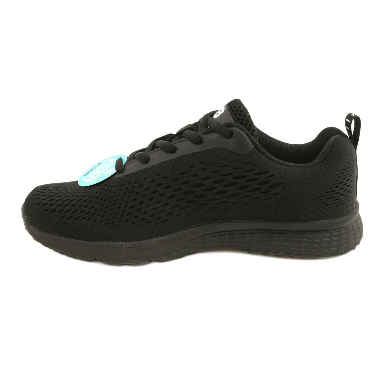 Chaussures de sport classiques noires avec un insert confortable en MOUSSE CONFORT. Fabriqué dans un tissu extensible qui respire à l’air tout en s’adaptant à chaque pas. Ils sont assez universels, ils s’adaptent à toutes les tranches d’âge. Vous pouvez les porter tous les jours et les porter au gymnase ou pour les promenades. La semelle se caractérise par un très bon amorti, grâce à l’utilisation de mousse EVA et de caoutchouc pour sa fabrication. Les chaussures sont dans des tons de noir, utilisées de manière à être attrayantes et à souligner leur message sportif. Ils s’adaptent à un style ample, pas seulement aux survêtements.