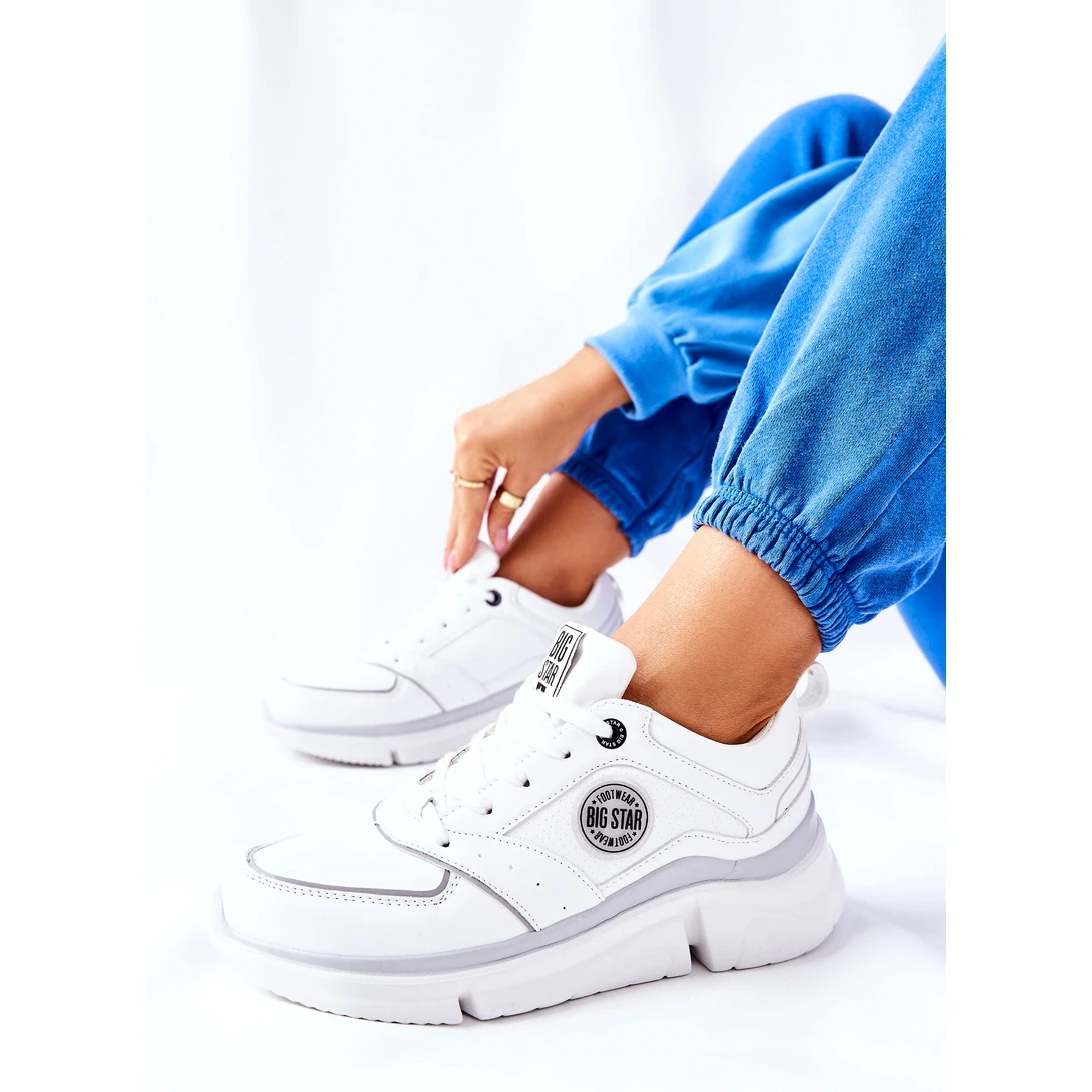Chaussures de sport classiques pour femmes de la célèbre marque Big Star. Les chaussures sont faites de cuir écologique et de matière textile. Ils ont un emblème décoratif à l’extérieur. La semelle massive rend les chaussures très stables. Classique avant tout, misez sur Big Star ! Lorsque vous choisissez une taille, veuillez utiliser le tableau des tailles.