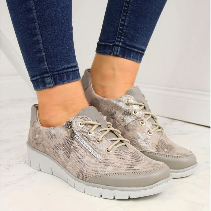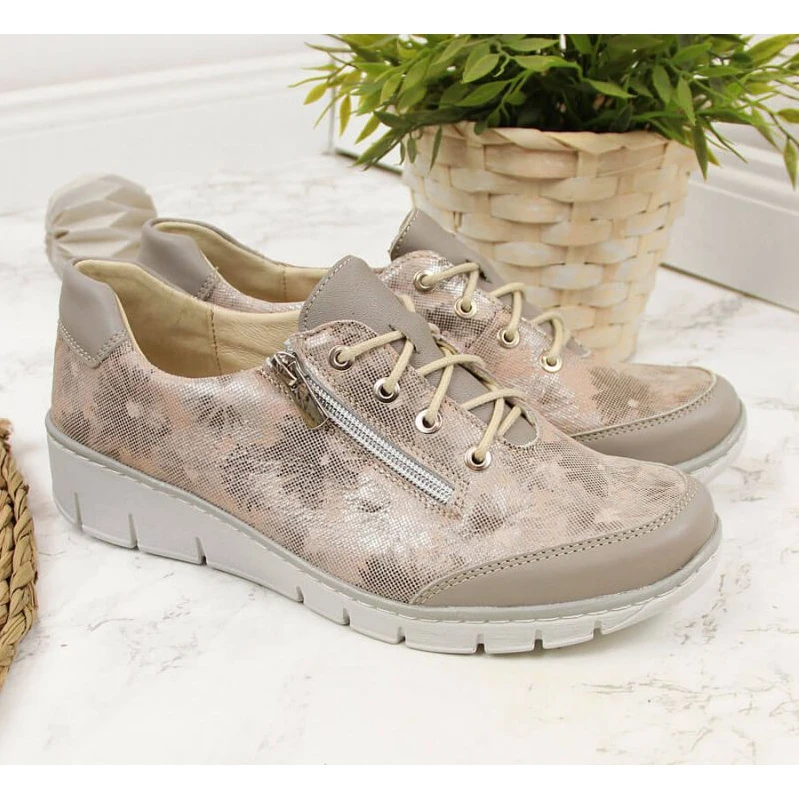 Chaussures en cuir Ă fleurs beige Helios W 334