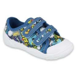 Baskets Maxi pour enfants dans les tailles 18-26 avec un motif de chat fantaisie sur les pointes. Les chaussures fermĂ©es par double velcro stabilisent parfaitement le pied de l’enfant, et les matières aĂ©rĂ©es en coton rendent les baskets lĂ©gères et l’enfant peut aussi les porter en Ă©tĂ©.