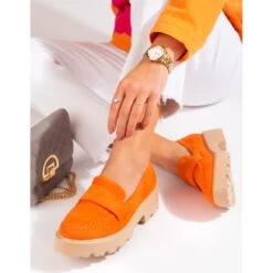 Vinceza Mocassins aux femmes Femmes Orange Cuir artificiel Cuir artificiel