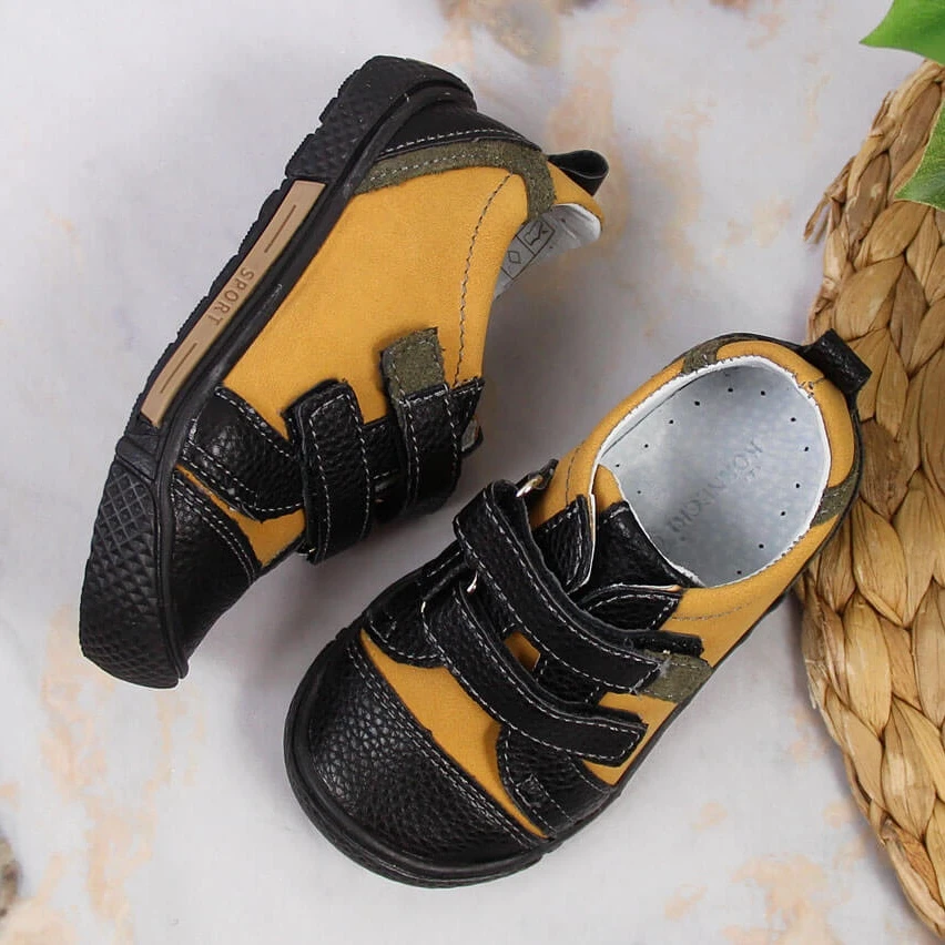 Chaussures KORNECKI confortables. La tige assure la stabilité du petit pied de l’enfant, tandis que la conception garantit la liberté de mouvement des doigts. La semelle intérieure en cuir est profilée et la semelle est légère, flexible et antidérapante.