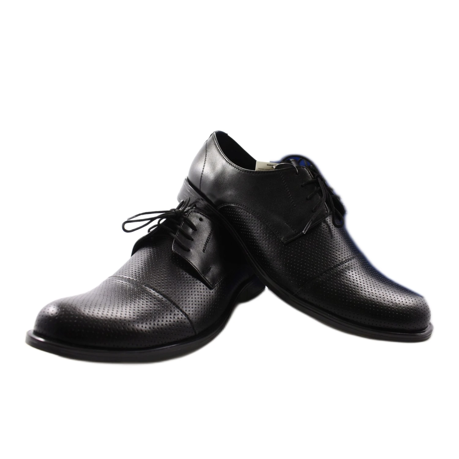 Les chaussures pour hommes Moskała noires sont faites de cuir de bonne qualité. Ils sont relativement légers, vous pouvez donc marcher dedans toute la journée sans ampoules ni inconfort. Il convient de noter un dégradé intéressant du matériau, qui diversifie la forme brute des chaussures – nous parlons de la transition entre le cuir mat et lisse et les côtés et les orteils perforés. Cela vaut la peine d’avoir au moins une paire universelle – grâce à cela, vous pouvez facilement vous débarrasser du stress associé aux réunions et aux départs officiels.