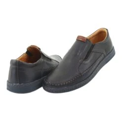 Les chaussures de coupe classique sont des mocassins fabriqués par un fabricant polonais réputé. Les chaussures bleu marine foncé en cuir naturel, dans une coupe universelle, feront leurs preuves à la fois en complément des stylisations de tous les jours et en costume moins formel. Ils sont faciles à ajuster au style et au porteur – cela fonctionnera pour les personnes de tous âges. Les chaussures sont visuellement attrayantes, mais aussi confortables – elles ont un insert en cuir et pour le confort de les mettre, elles ne sont pas fermées.