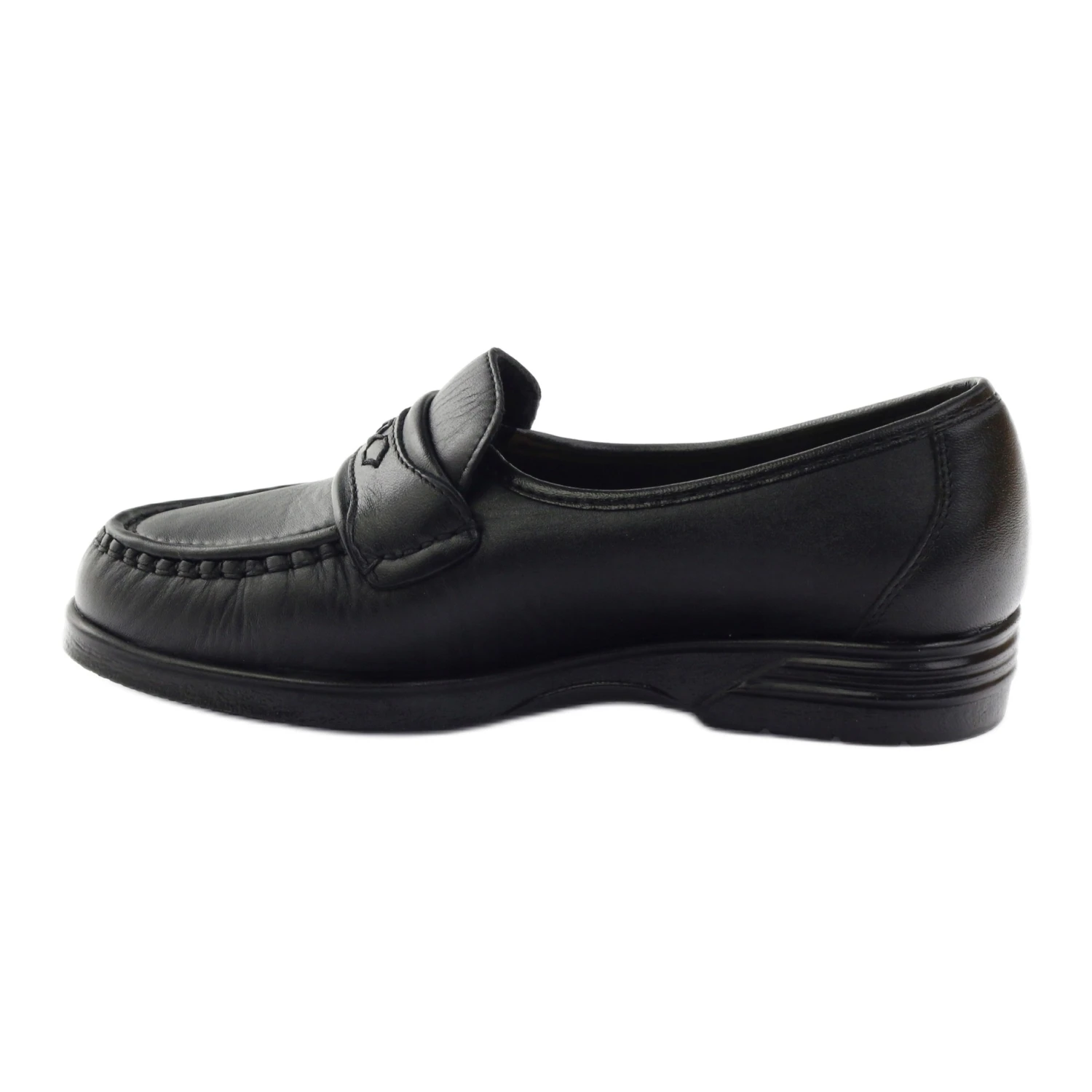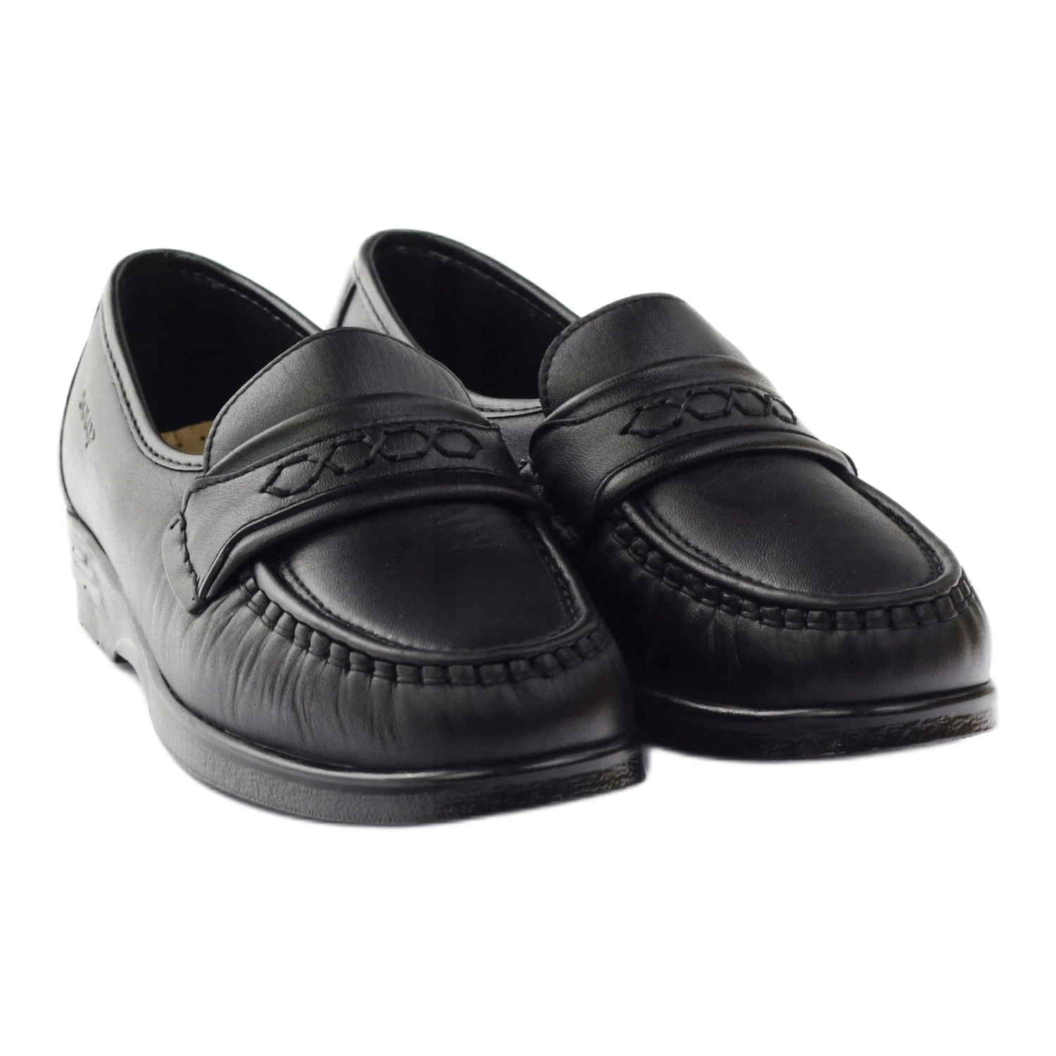 Les chaussures pour femmes Solo sont des mocassins pour femmes extrêmement confortables. Les chaussures sont en cuir naturel noir et les solutions utilisées permettent aux personnes ayant des problèmes orthopédiques de pied d’atteindre ce modèle de chaussures. La tige en cuir avec insert à l’intérieur des chaussures a été complétée par une semelle plate en matériau souple qui protège les pieds des micro-blessures lors du port.