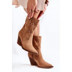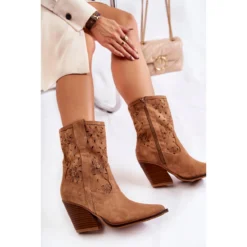 Les santiags sont montĂ©es sur un talon en forme de tige tronquĂ©e. Mode avec une tige jusqu’au mollet. Le bout pointu caractĂ©ristique distingue cette coupe. Fermeture Ă©clair de couleur assortie Ă l’intĂ©rieur. RĂ©alisĂ© en daim Ă©cologique avec un dĂ©licat motif ajourĂ© et un motif floral. Ă€ l’intĂ©rieur, il y a un insert de matĂ©riau. Les chaussures ne sont pas isolĂ©es. Les bottes de cowboy sont un excellent choix pour la saison de transition. Lorsque vous choisissez une taille, veuillez utiliser le tableau des tailles.