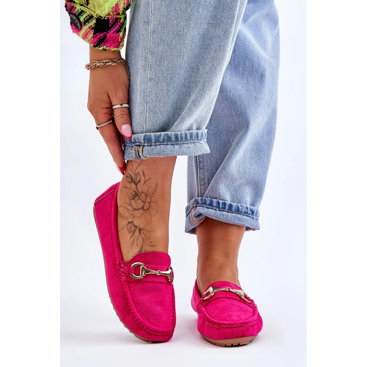 Les mocassins pour femmes sont les bonnes chaussures pour de nombreux styles ! Fabriqué en daim écologique agréable au toucher avec un insert en cuir écologique. Situé sur une plate-forme délicate. Orné d’un élément décoratif sur le devant. Le modèle de mocassin classique devrait être dans la garde-robe de chaque femme ! Lorsque vous choisissez une taille, veuillez utiliser le tableau des tailles.