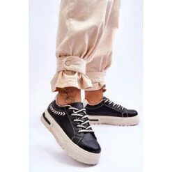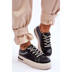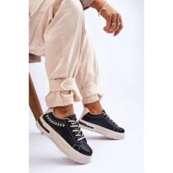 Les superbes chaussures de sport pour femmes sont fabriquées en cuir écologique. Ils ont des coutures décoratives sur le côté de la tige. Ce modèle a des lacets caractéristiques avec une couture en forme d’oreille. De plus, ce modèle dispose d’un insert amovible en matière. Les baskets ont été placées sur une plate-forme en plastique massive. Lorsque vous choisissez une taille, veuillez utiliser le tableau des tailles.