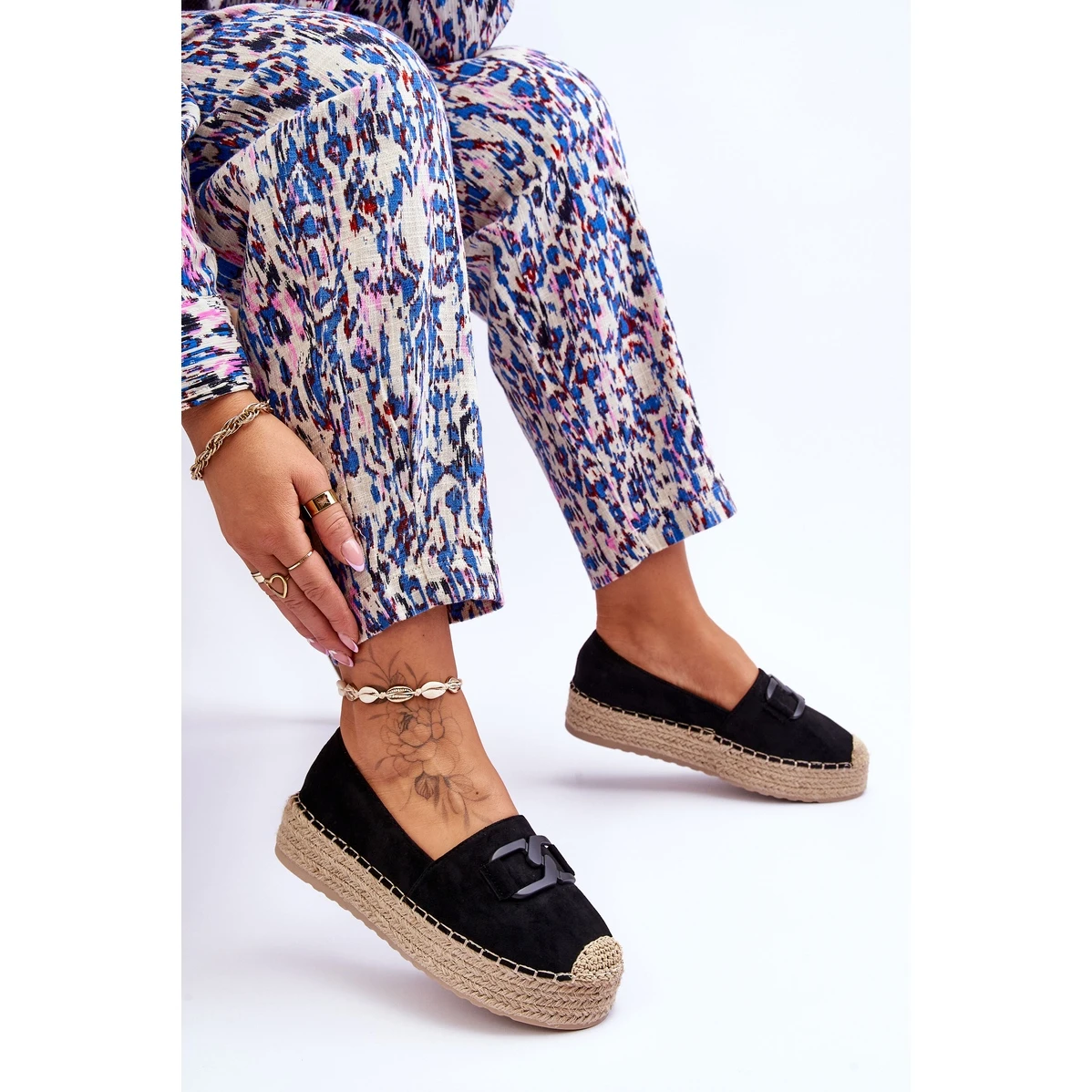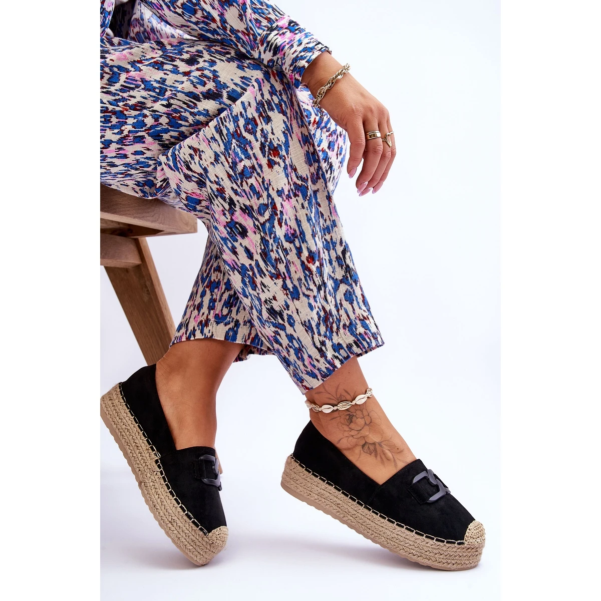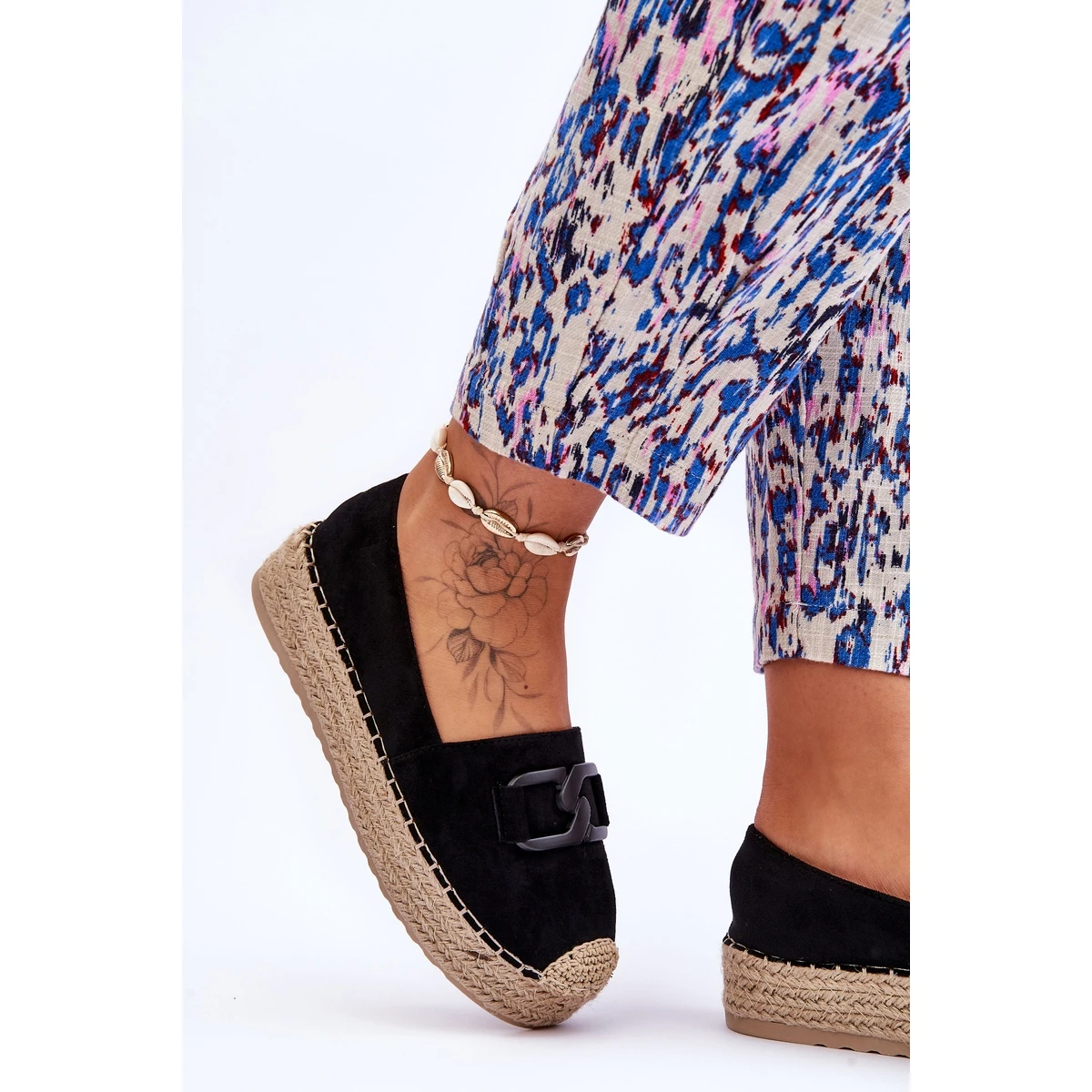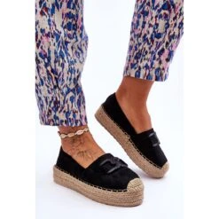 Les espadrilles classiques pour femmes ont une plate-forme tressée massive. Fabriqué en daim écologique agréable au toucher. Ils ont un nez arrondi avec une tresse. Parfait pour le style de printemps et d’été. La semelle intérieure en matière vous assurera un confort d’utilisation. Les espadrilles ont une décoration sur le devant de la tige. Vous devriez certainement les avoir dans votre garde-robe ! Lorsque vous choisissez une taille, veuillez utiliser le tableau des tailles.