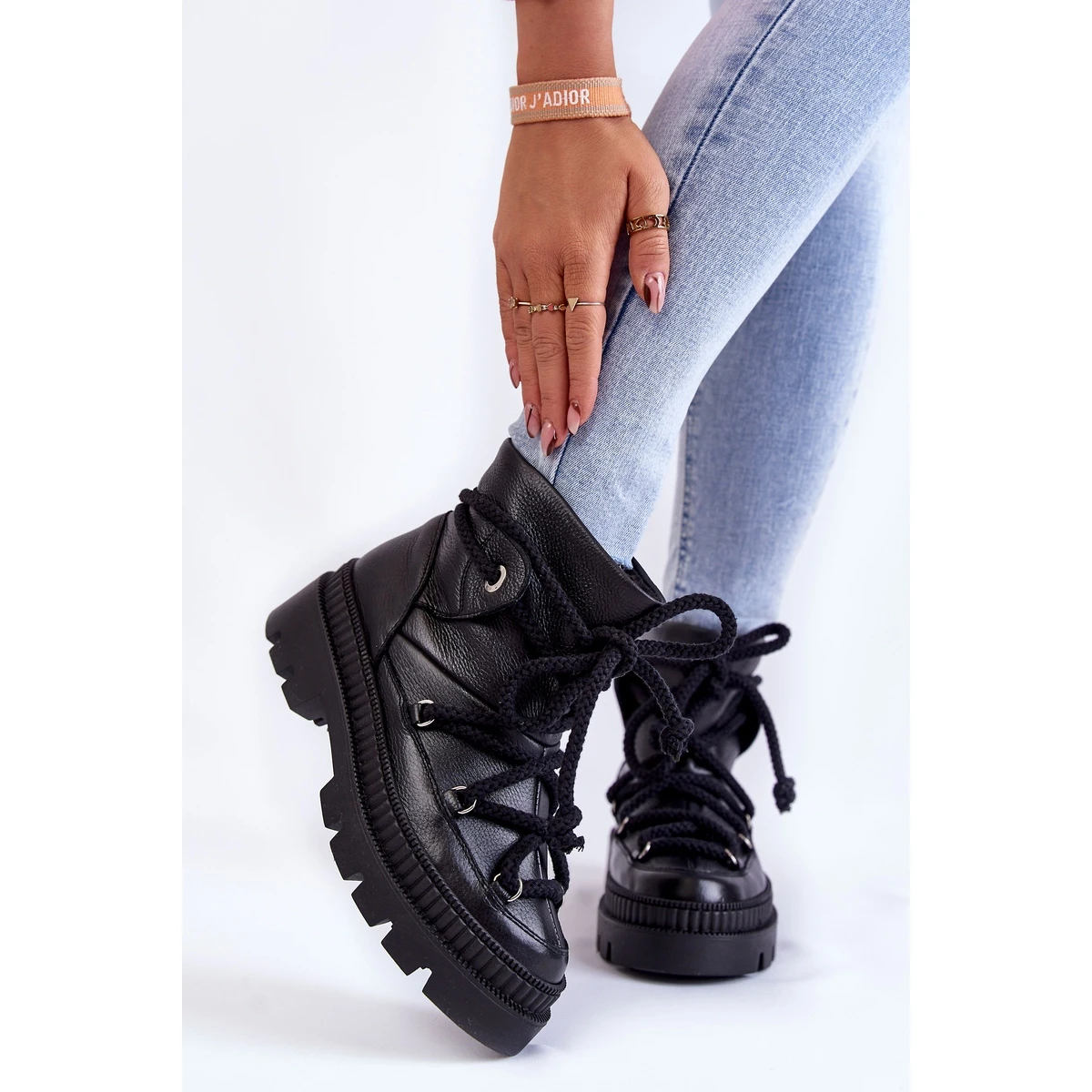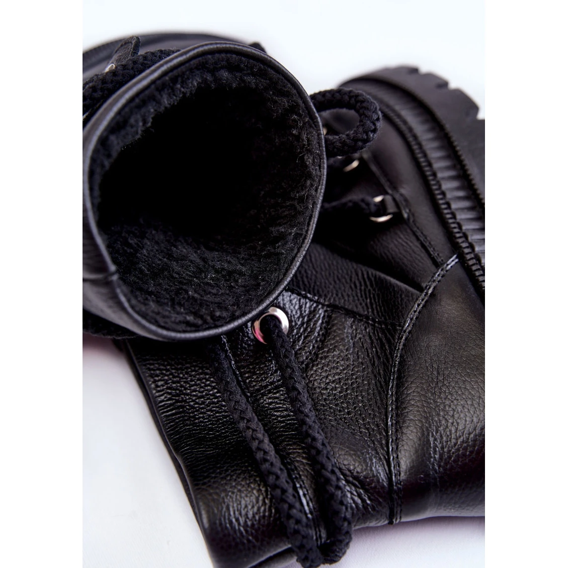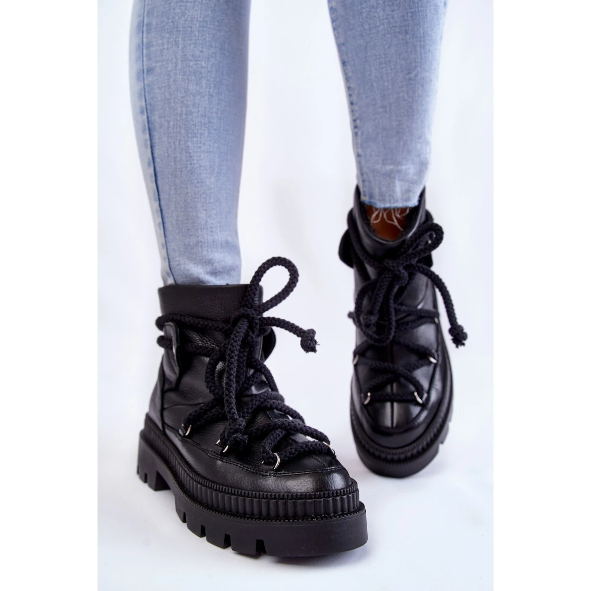 Génial, les bottes de neige pour femmes sont fabriquées en cuir de haute qualité. Le modèle a un laçage épais et solide. Les bottines sont montées sur un talon plat et une plateforme à rainures. Les bottes de neige ont une isolation en fourrure et un contrefort de talon rigide. Ce modèle sera certainement utile à tous les amateurs de chaussures chaudes et confortables ! Lorsque vous choisissez une taille, veuillez utiliser le tableau des tailles.