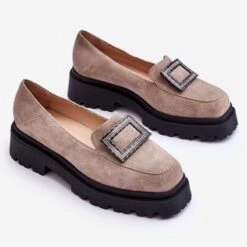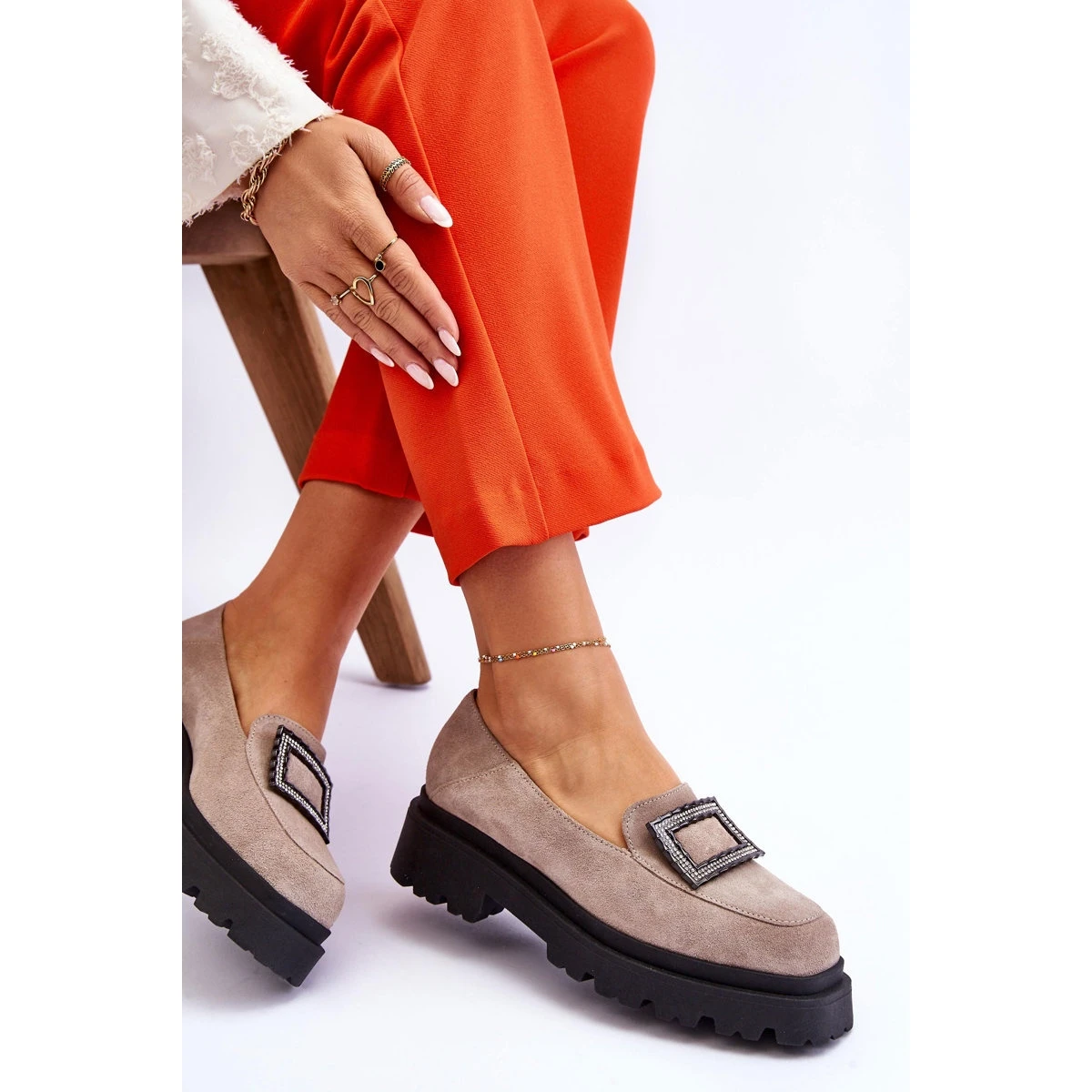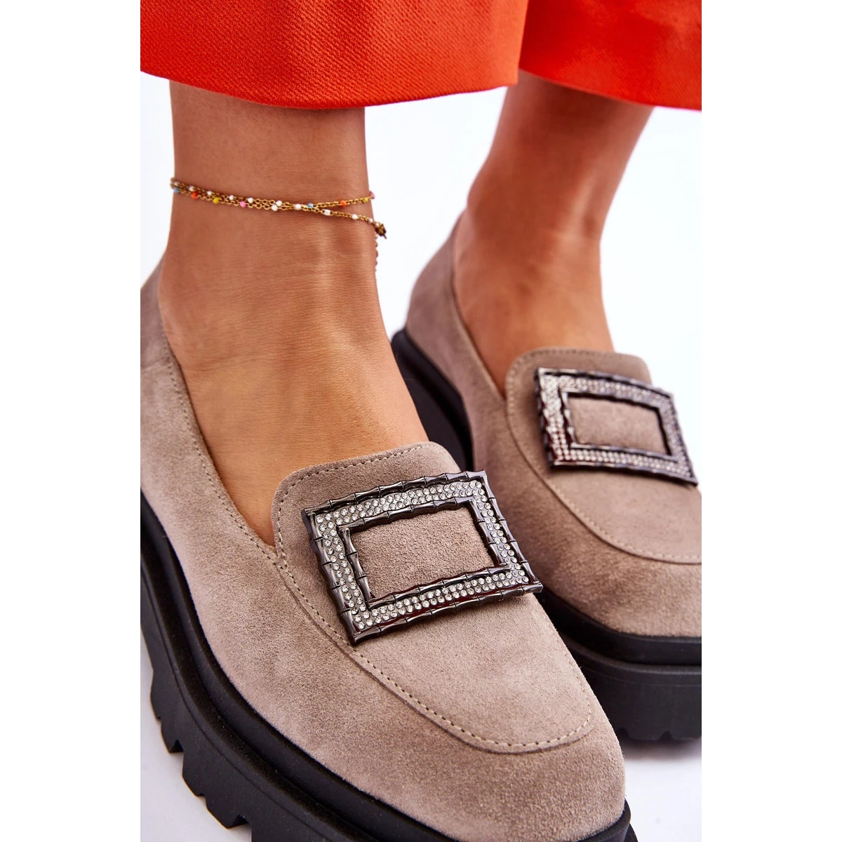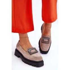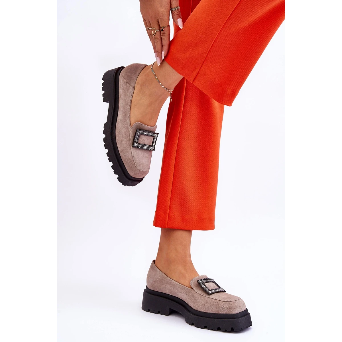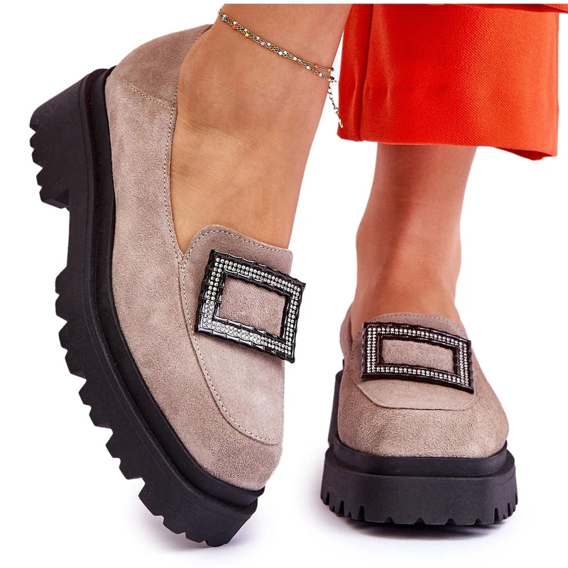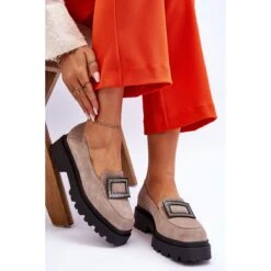 Tendance, les mocassins femme sont en cuir naturel. Les mocassins étaient placés sur une plate-forme massive et un talon plat. De plus, elles ont une décoration sur le devant avec des jets et un contrefort de talon rigidifié. La semelle intérieure souple assure une utilisation confortable. Les mocassins seront parfaits dans de nombreux styles! Lorsque vous choisissez une taille, veuillez utiliser le tableau des tailles.