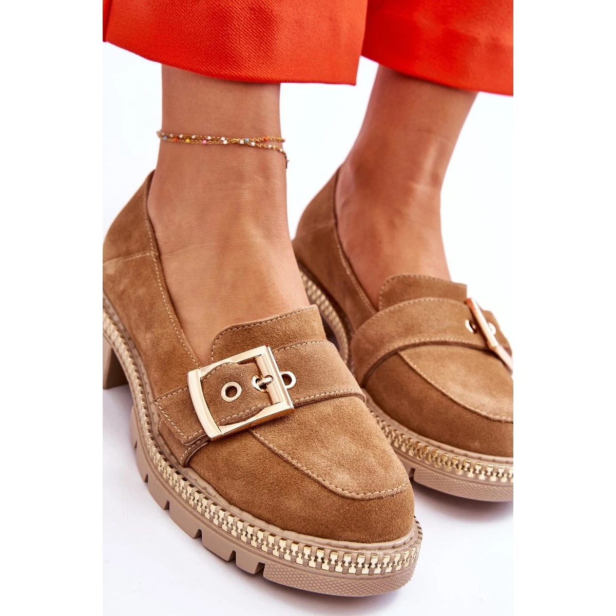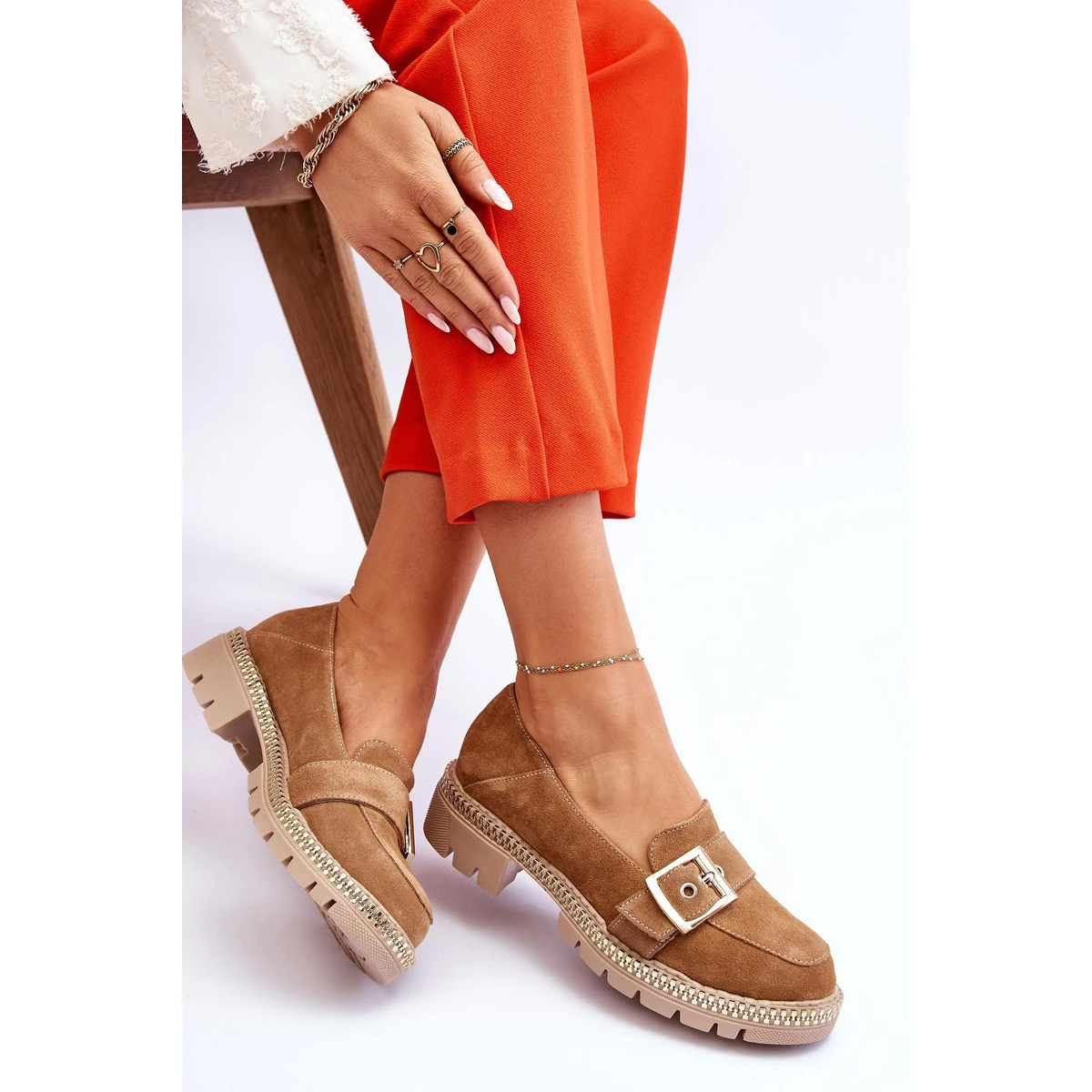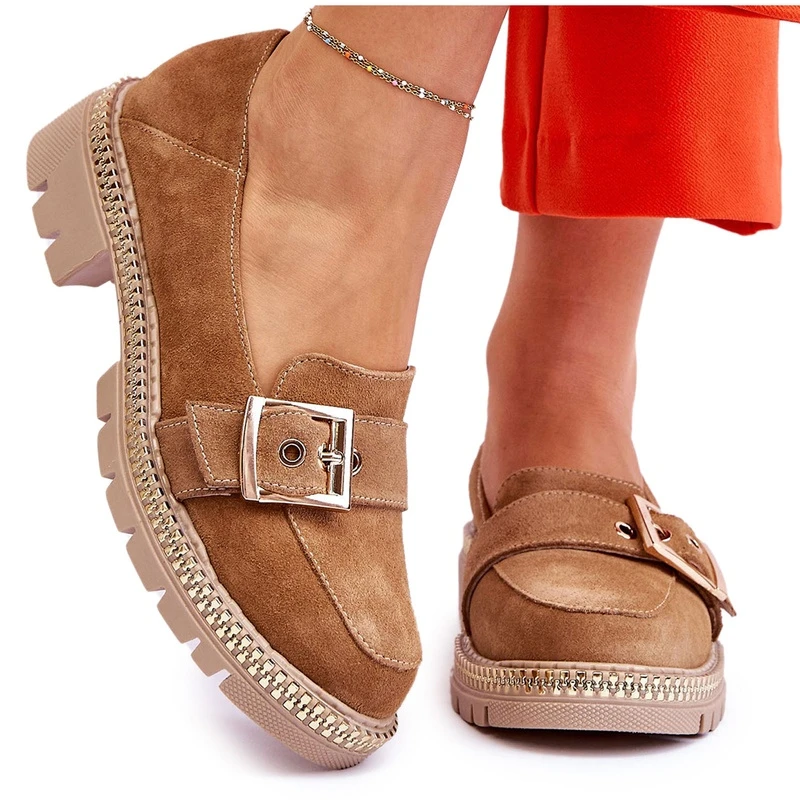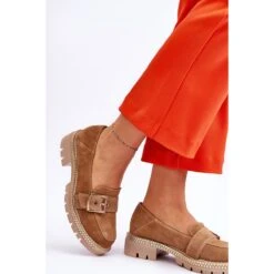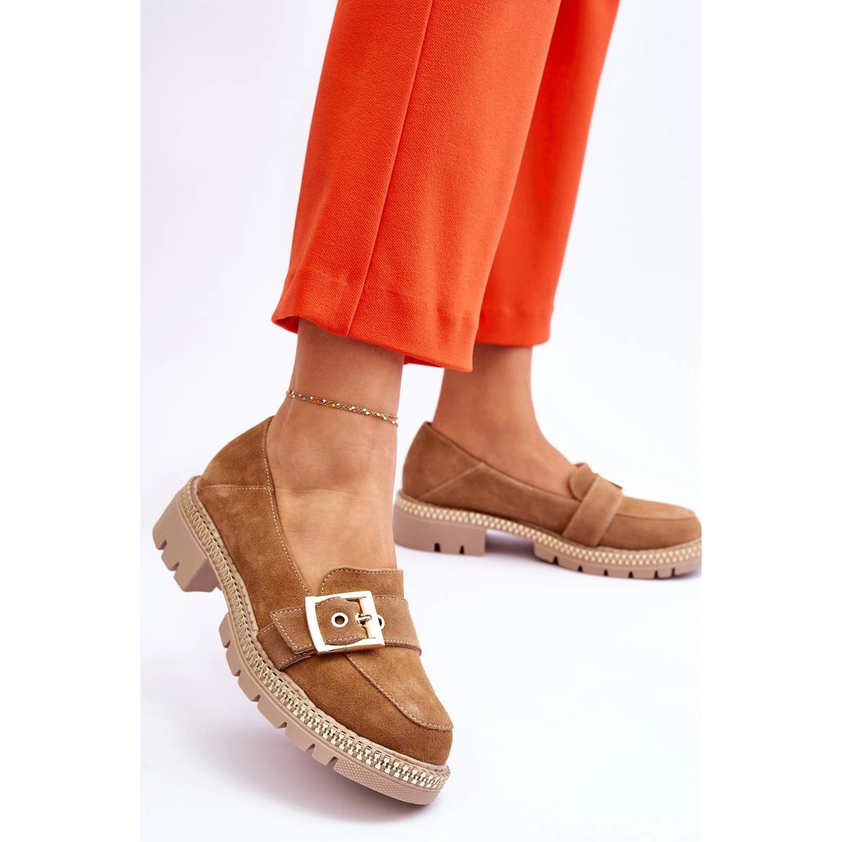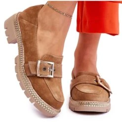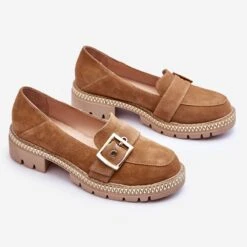 Insolites, les mocassins femme montés sur une plateforme et des talons plats. De plus, la plate-forme était ornée d’une serrure. Ce modèle est en cuir naturel. Les mocassins ont une ceinture décorative avec une boucle. Le contrefort de talon renforcé assurera une bonne stabilisation du pied et la semelle intérieure souple assurera une utilisation confortable. Lorsque vous choisissez une taille, veuillez utiliser le tableau des tailles.