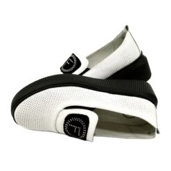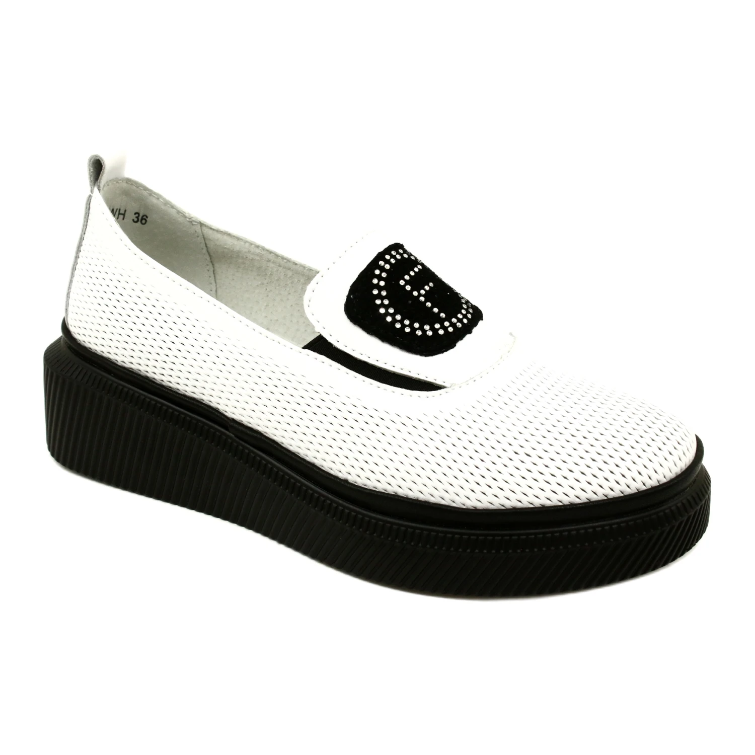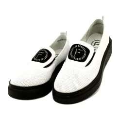 Slip-on femme perforé avec élastiques pour un enfilage plus facile et plus habillé. De plus, grâce à cela, ils s’adaptent au pied et à la hauteur du cou-de-pied. Le logo noir contrasté avec des sequins sur les languettes les rend originaux. Chaussures pour femmes en cuir naturel, disponibles dans des couleurs classiques. Cela permet de les assortir plus facilement à de nombreux styles et garde-robes. Dans le même temps, les baskets élégantes avec un fond plus épais sont légères et confortables pour les pieds.