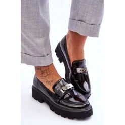 Les mocassins pour femmes sont en cuir écologique. Elles étaient montées sur une plate-forme et un talon plat avec rainures. La semelle est en plastique. La semelle intérieure souple en cuir écologique assurera une utilisation confortable. Les mocassins ont un élément décoratif sur le devant. Un excellent modèle pour de nombreuses stylisations élégantes et décontractées. Lorsque vous choisissez une taille, veuillez utiliser le tableau des tailles.