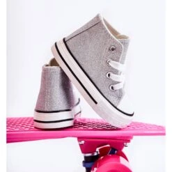 Baskets montantes pour enfants en matière textile. Décoré de paillettes. Reliure classique. Pointe renforcée avec du caoutchouc. Semelle intérieure souple et textile. Semelle en caoutchouc et antidérapante. Baskets légères et confortables. Parfait pour le printemps et l’été. Lorsque vous choisissez une taille, veuillez utiliser le tableau des tailles.