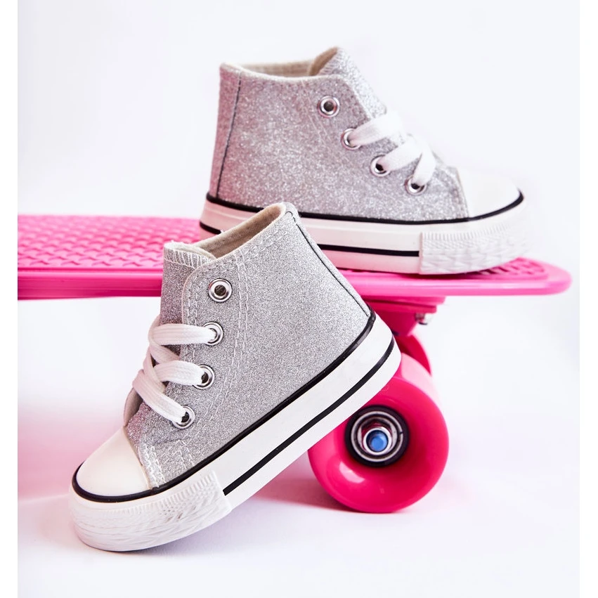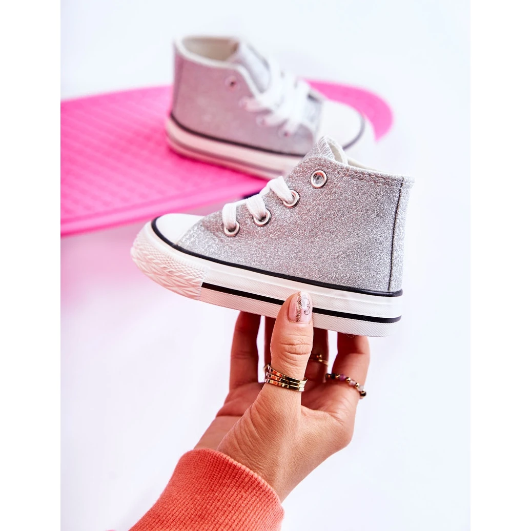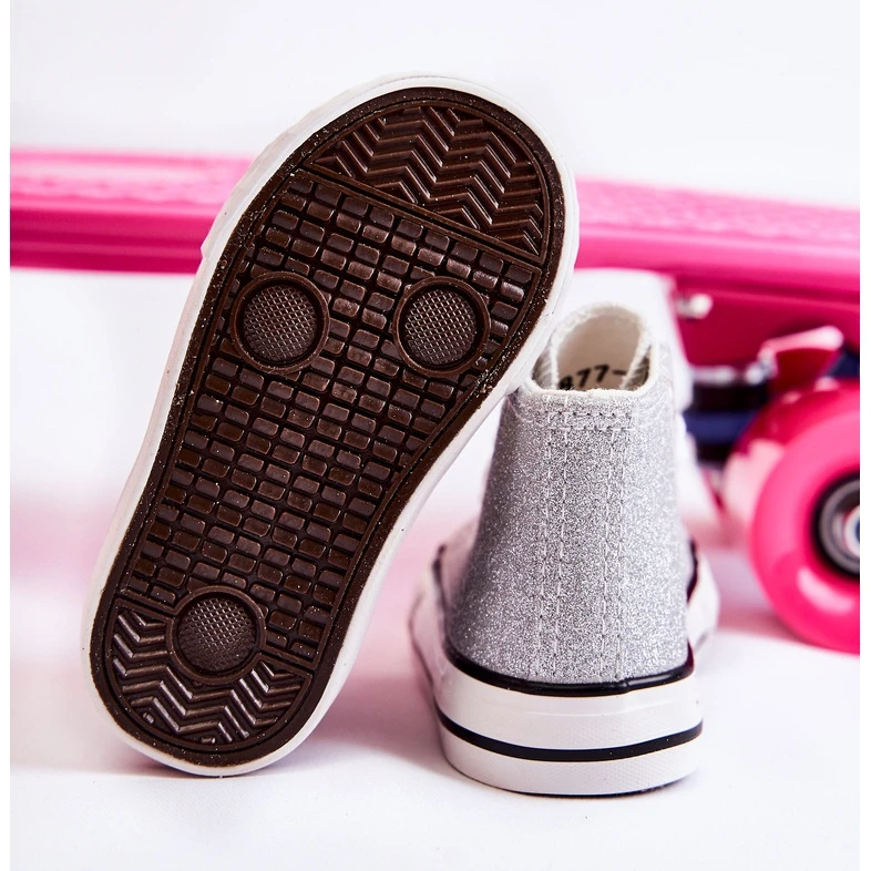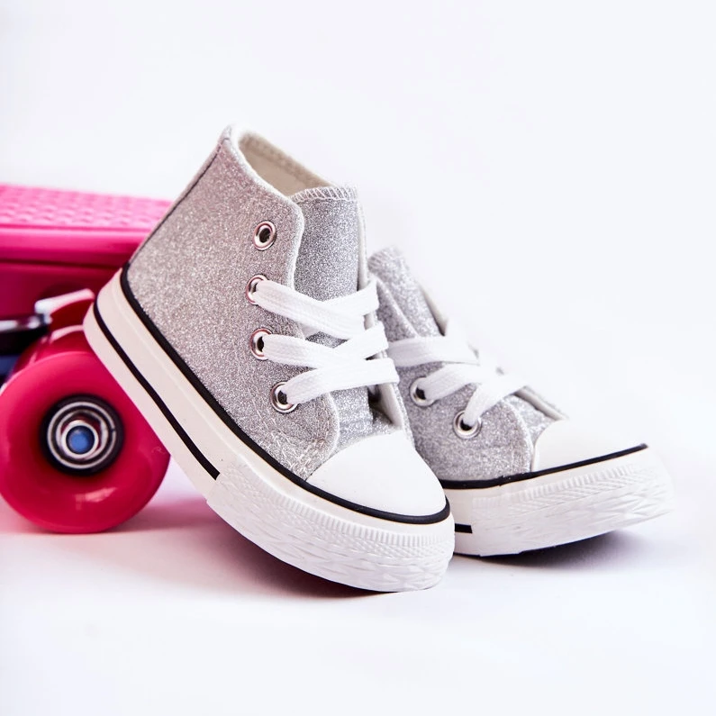 Baskets montantes pour enfants en matière textile. Décoré de paillettes. Reliure classique. Pointe renforcée avec du caoutchouc. Semelle intérieure souple et textile. Semelle en caoutchouc et antidérapante. Baskets légères et confortables. Parfait pour le printemps et l’été. Lorsque vous choisissez une taille, veuillez utiliser le tableau des tailles.