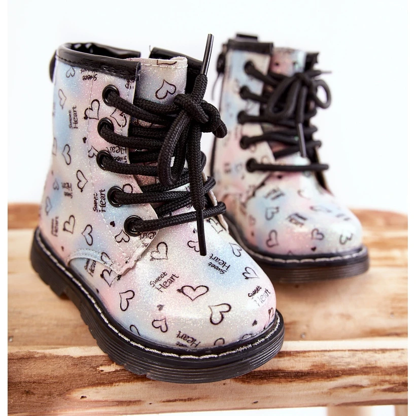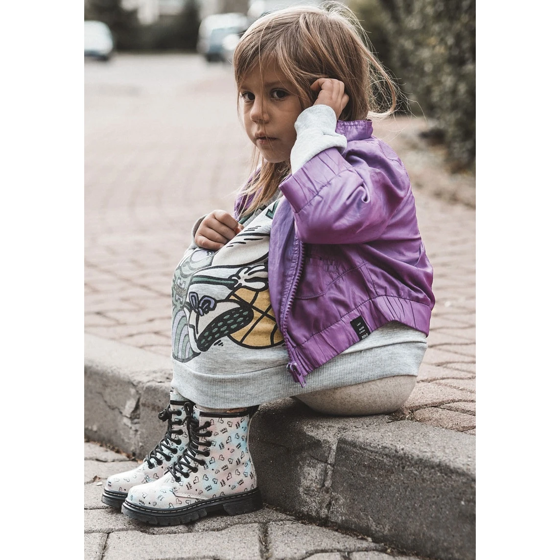De belles bottes pour filles sont fabriquées en cuir écologique dans un motif à la mode. De plus, ils sont décorés de paillettes. Les bottes ont une fermeture éclair sur le côté de la tige et un laçage classique. Bottes montées sur un talon plat et une plateforme avec une semelle antidérapante. De plus, il est cousu avec du fil. À l’intérieur, ils étaient isolés avec une couverture à chaussures. Un super modèle pour votre tout-petit ! Lorsque vous choisissez une taille, veuillez utiliser le tableau des tailles.