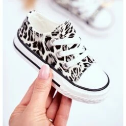 Baskets classiques en matière brillante. Les chaussures ont un motif léopard à la mode et brillent magnifiquement au soleil ! Tout ce que les petites princesses aiment le plus !