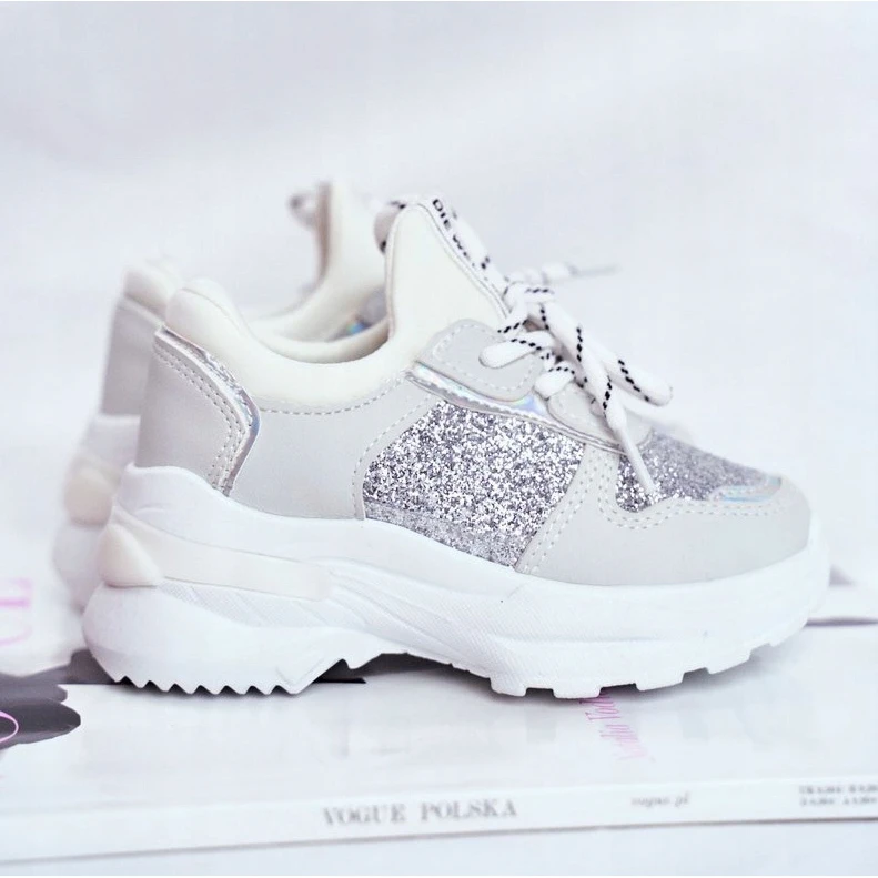 Les chaussures de sport blanches raviront beaucoup de filles, et en même temps ses parents. Les inserts scintillants scintillent au soleil, et qu’est-ce qu’une petite princesse pourrait vouloir de plus de ses chaussures ?