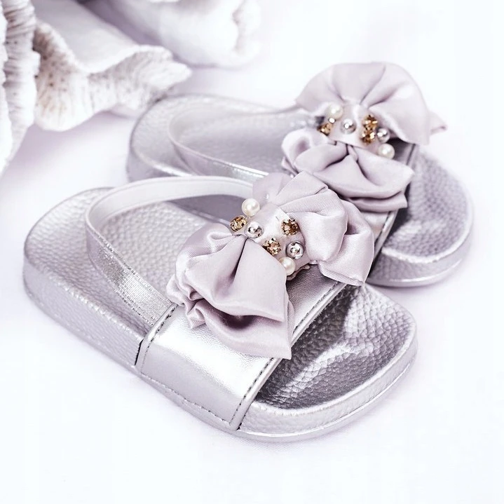 Belles chaussons pour filles violet clair, en caoutchouc, qui offriront une bonne adhérence et éviteront de glisser. La semelle mesure 1,5 cm de haut. Les chaussures sont à enfiler, mais ont une bande élastique supplémentaire, grâce à laquelle les rabats ne glisseront pas des pieds des enfants. L’élément décoratif est un arc fini avec des perles blanches et des cristaux d’argent et d’or, ce qui donne aux poupées un caractère vraiment royal. Chaque petite fille les aimera sûrement.