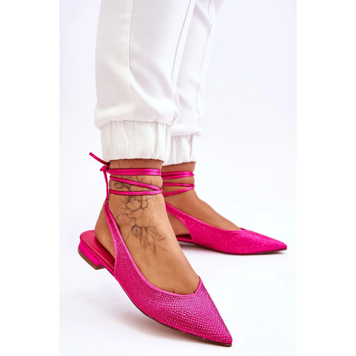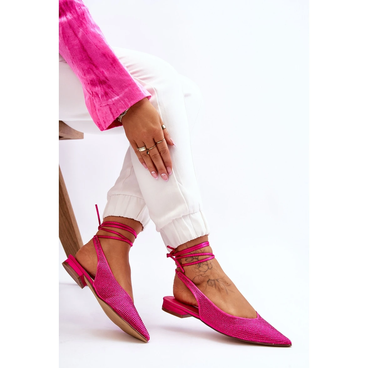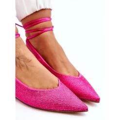 Les ballerines à la mode avec un talon ouvert et un bout pointu sont en matière textile. La tige était en outre décorée de jets. La semelle intérieure douce en éco-cuir assurera le confort lors de l’utilisation. Les ballerines ont un talon plat et un lien autour du mollet. Un excellent modèle pour les journées plus chaudes ! Lorsque vous choisissez une taille, veuillez utiliser le tableau des tailles.