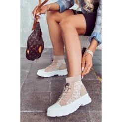 Sneakers avec une tige arrivant au-dessus de la cheville en matière textile avec un motif intéressant. Ils ont des bandes élastiques qui vous permettent de vous ajuster à la largeur de la jambe. Coupe classique avec bout en caoutchouc renforcé et talon légèrement raidi. Une plate-forme épaisse et massive et un talon plat dominent cette saison parmi les baskets. Il y a un insert de matière au milieu. Vous pouvez combiner des baskets dans un style sportif et décontracté avec une robe et des survêtements. Coupe à la mode que vous devriez avoir dans votre garde-robe ! Lorsque vous choisissez une taille, veuillez utiliser le tableau des tailles.