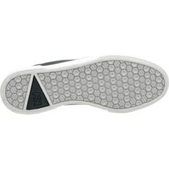 Les chaussures sont en cuir fleur, qui est doux, ce qui affecte le confort de port des chaussures. De plus, les chaussures sont équipées d’un système de ventilation, situé sur le côté, où vous pouvez voir des rangées de petits trous. Les orteils sont arrondis et le talon rigidifié avec une couche supplémentaire de matériau en daim. La tige est bleu marine, tandis que la semelle et les lacets sont blancs contrastés. Un motif délicat est embossé sur la face inférieure de la semelle, qui forme une bande de roulement. Ce sont des chaussures décontractées confortables pour hommes.
